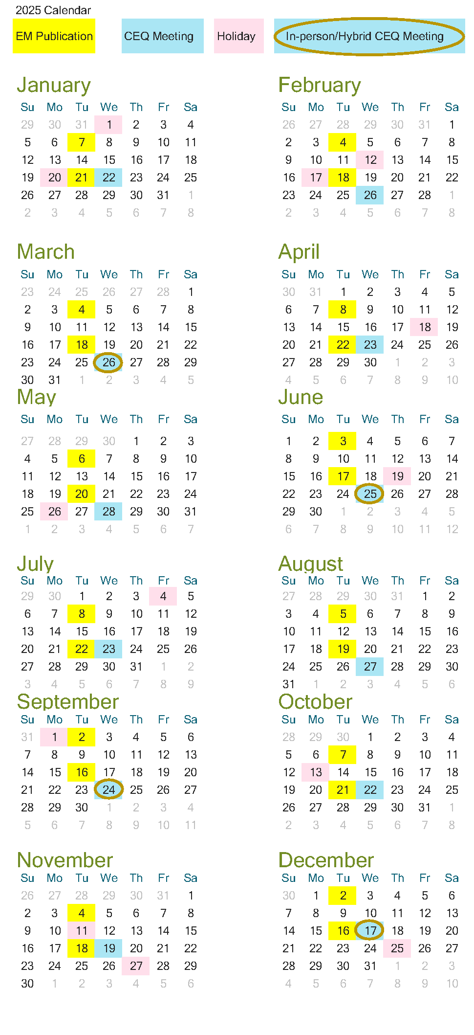 Environmental Monitor Publication Dates and CEQ Meeting Dates - Calendar