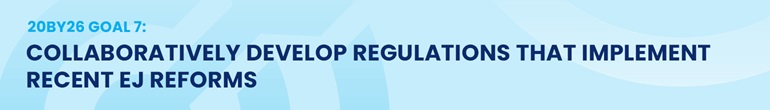 Goal 7 of 20BY26 reinforces our commitment to Environmental Justice (EJ) by guiding DEEP’s work drafting regulations to implement the Legislature’s mandates in Public Act 23-202. This statute increased the public participation requirements for applications for DEEP permits and, for the first time, authorized the Commissioner to consider the cumulative impact of existing health and environmental stressors in an EJ community when evaluating certain permit applications. DEEP will engage community members from the outset of regulations development, resulting in a new set of rules to protect our most vulnerable communities. Background on this goal is presented in DEEP’s 20BY26, Setting the Target: CT DEEP 2026 Goals (February 2024).