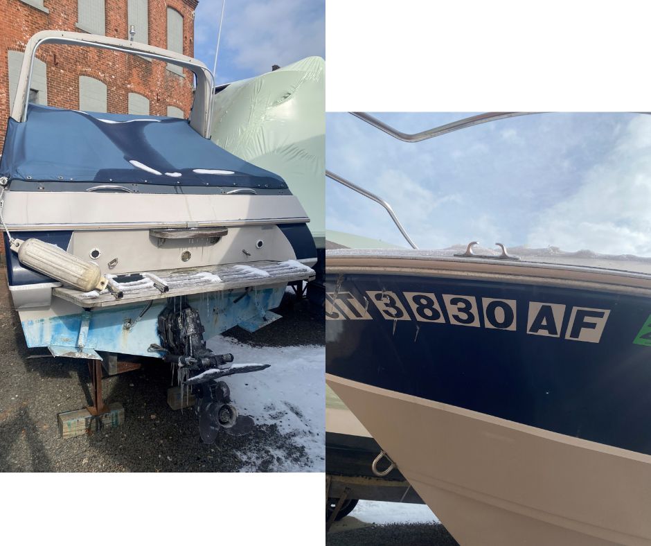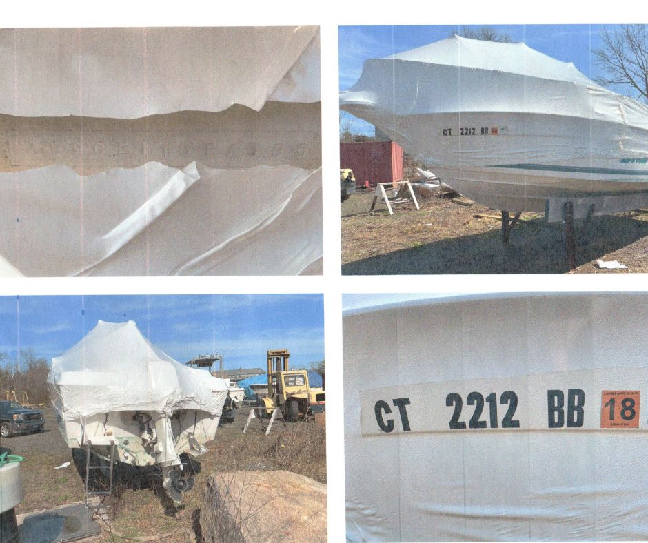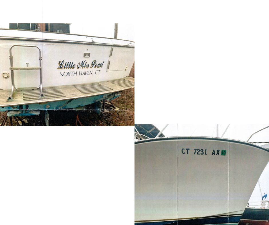 “Documented” vessels are vessels that are or were numbered (registered) with the Coast Guard. They are larger vessels that will likely have a name and hailing port painted on the back of the vessel, and are unlikely to have a “CT” registration number on the front but they may still display a Connecticut registration decal. There are special rules for dealing with an abandoned vessel that is or was documented. If you are unsure if the vessel you are dealing with is or was documented, feel free to call us at (860) 447-4354.