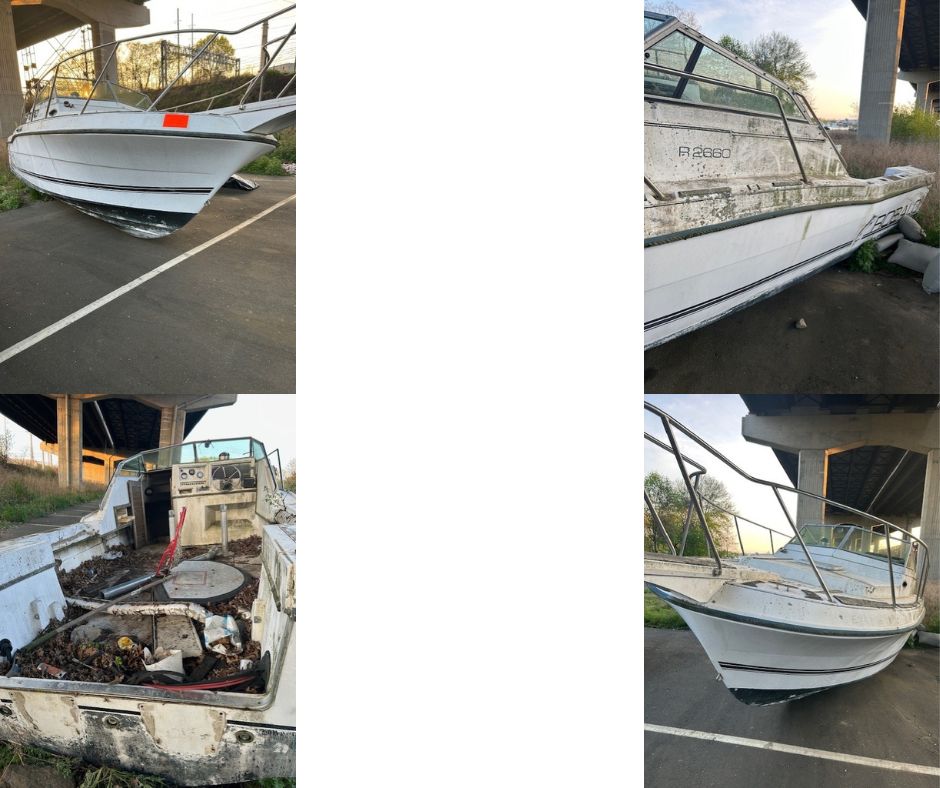 In Connecticut, a vessel is considered abandoned if it is: • Left on someone’s property for more than 24-hours without the property owner’s permission; • Found free floating and unattended on the waters of the state for more than 24-hours (you should note the position of the vessel and notify DEEP Emergency Dispatch at 860-424-3333 before taking the vessel into custody); • Improperly registered and left on the waters of the state for more than 24-hours (this provision is intended for police or government use); • Left at a mooring for more than sixty days since payment for the mooring became overdue; (this provision is intended for municipal or harbormaster use) • Left at a commercial facility for more than one year since payment for storage became overdue; or,• Found during a declared public emergency in a public right-of-way.