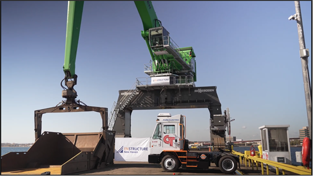 - Also as part of DEEP’s 2022 DERA awards, Waterfront Enterprises, LLC (DBA Gateway Terminal) received $159,504.41 toward the scrappage and replacement of one MY 2001 diesel terminal tractor with an all-electric MY 2003 equivalent. Grant funding included the electric (vehicle) charging infrastructure (See photo titled “GantryCrane” for Diesel tractor and the electric gantry crane which was funded under DEEP’s VW program).