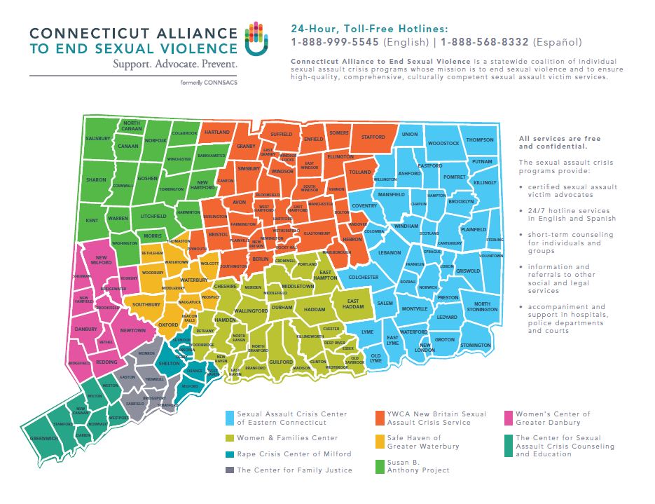 Or visit the Connecticut Alliance to End Sexual Violence website to find a rape crisis center near you.