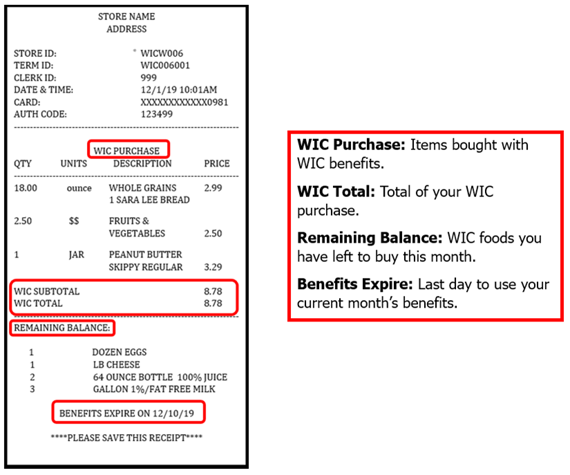 - Keep your last receipt. It shows your remaining food benefits balance and it can help your WIC office to assist you if issues arise.