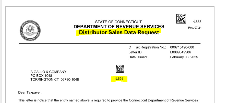 This section is for distributors who received rL858, Distributor Sales Data Request, from DRS