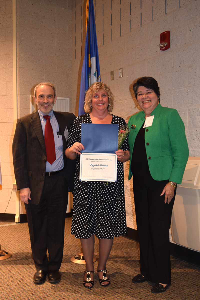 Paraeducator of the Year 2019 Marisol Rodriguez with members of the board of education