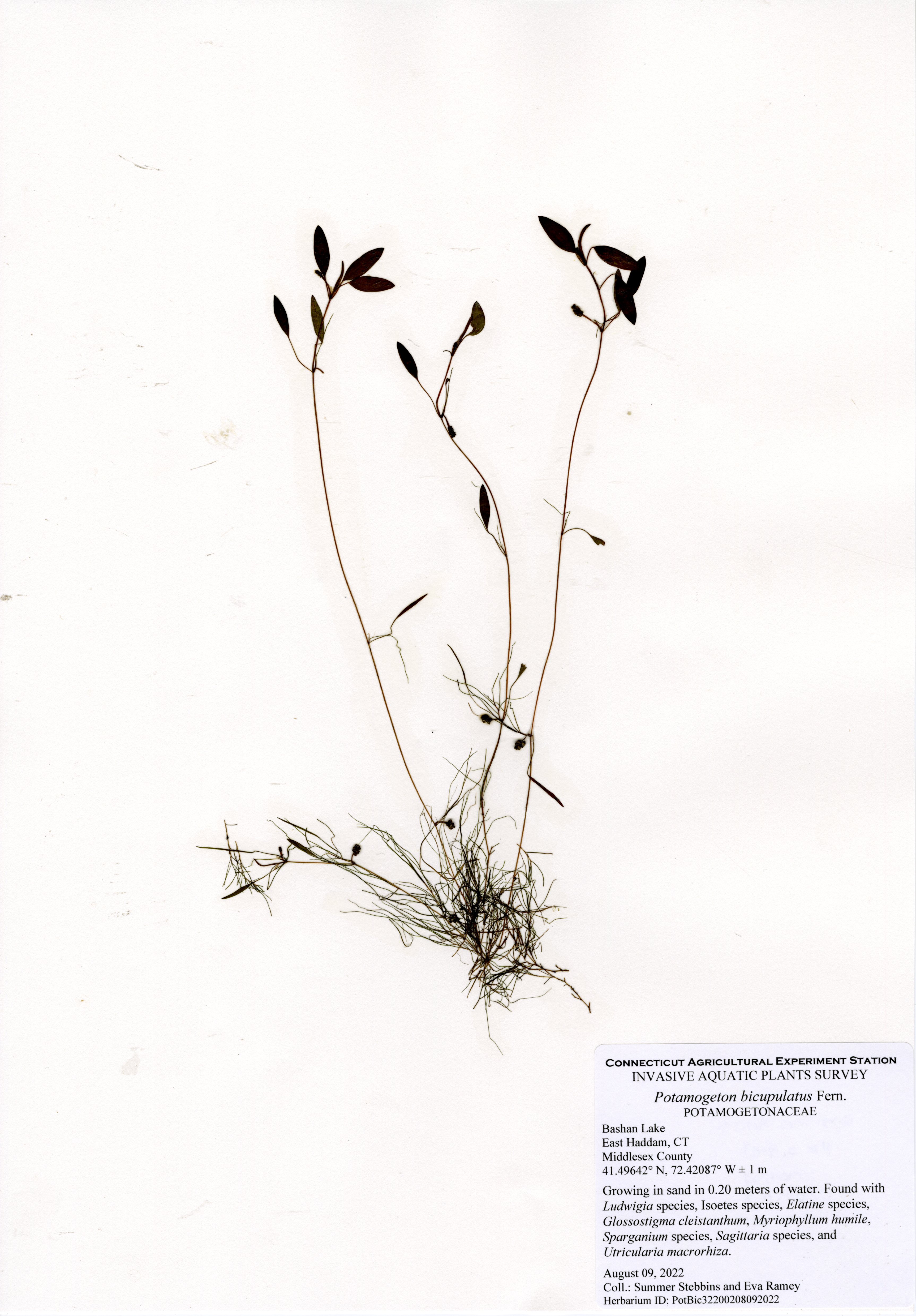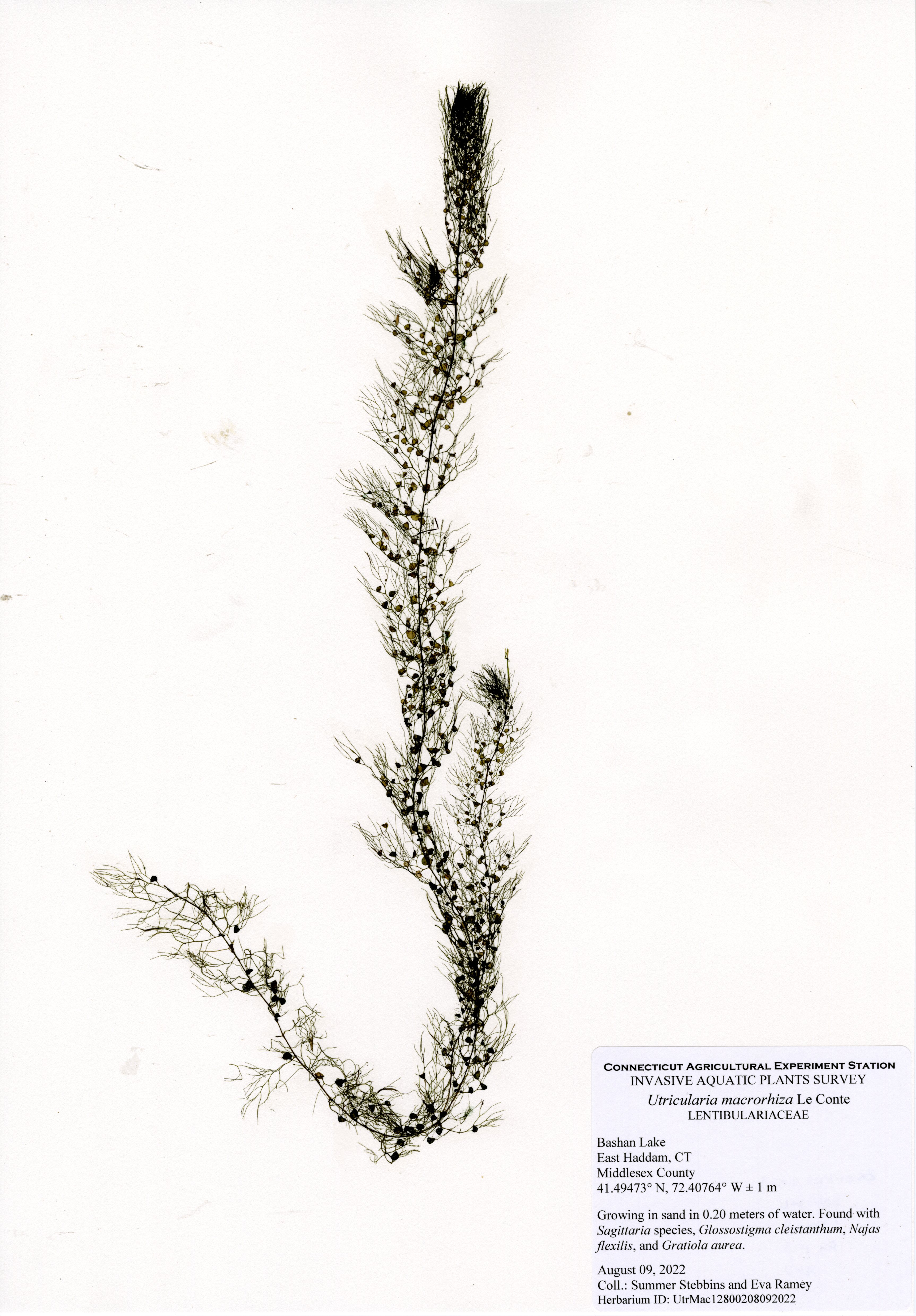 Our 2022 survey found an expansion of the fanwort, a few variable-leaf watermilfoil plants that were hand-pulled, and 25 native species. Vasey’s pondweed was not observed; however, we would expect a resurgence if the future. Charophyte was common at depths from 6-20 feet. A few very sparse patches of invasive phragmites (Phragmites australis) were also observed. The most common native species were purple bladderwort (Utricularia purpurea), common bladderwort (Utricularia macrorhiza), humped bladderwort (Utricularia gibba), arrowhead (Sagittaria species), snailseed pondweed (Potamogeton bicupulatus), waterwort (Elatine species), spikerush (Eleocharis species), coontail (Ceratophyllum demersum), and sevenangle pipewort (Eriocaulon aquaticum).