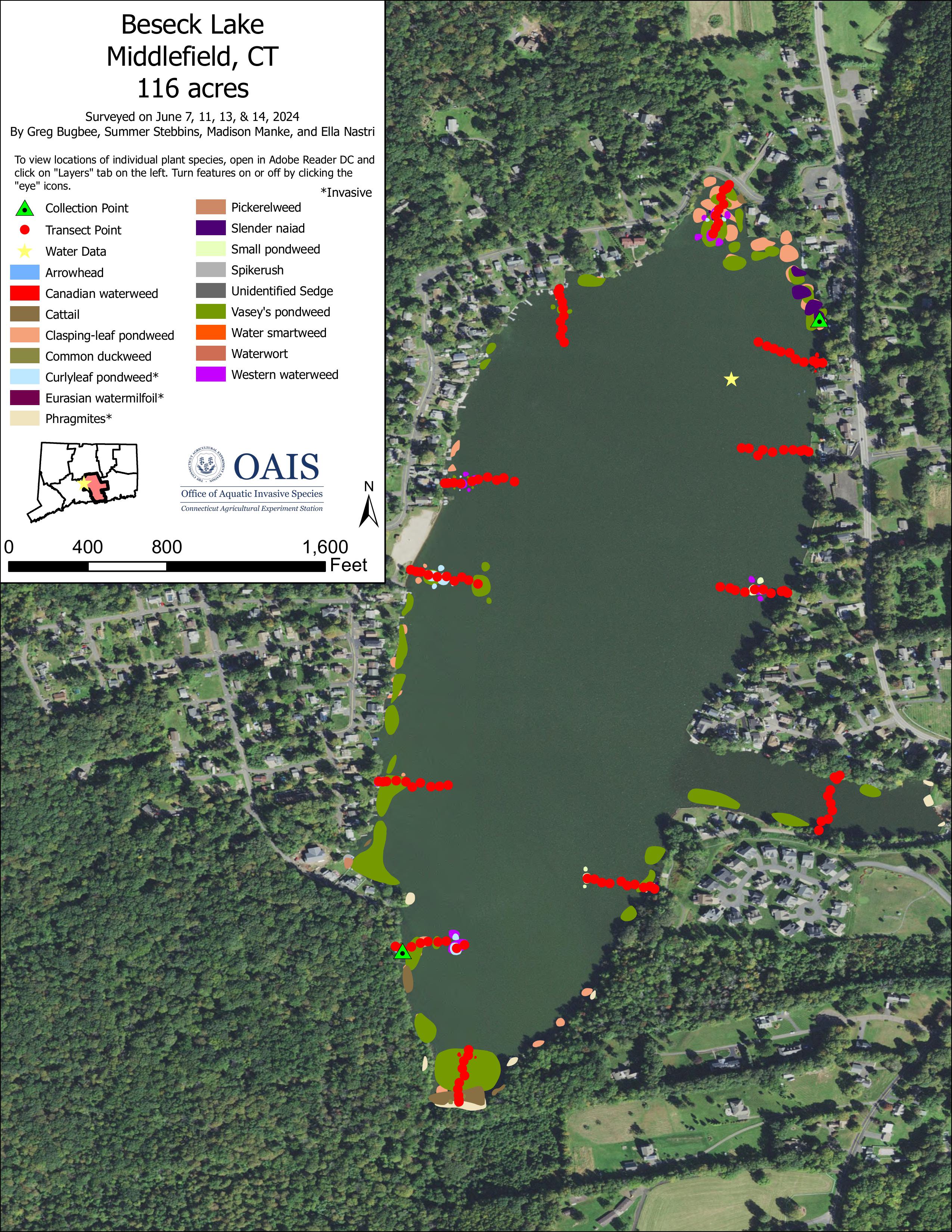 2024 Aquatic Plant Survey Map of Beseck Lake