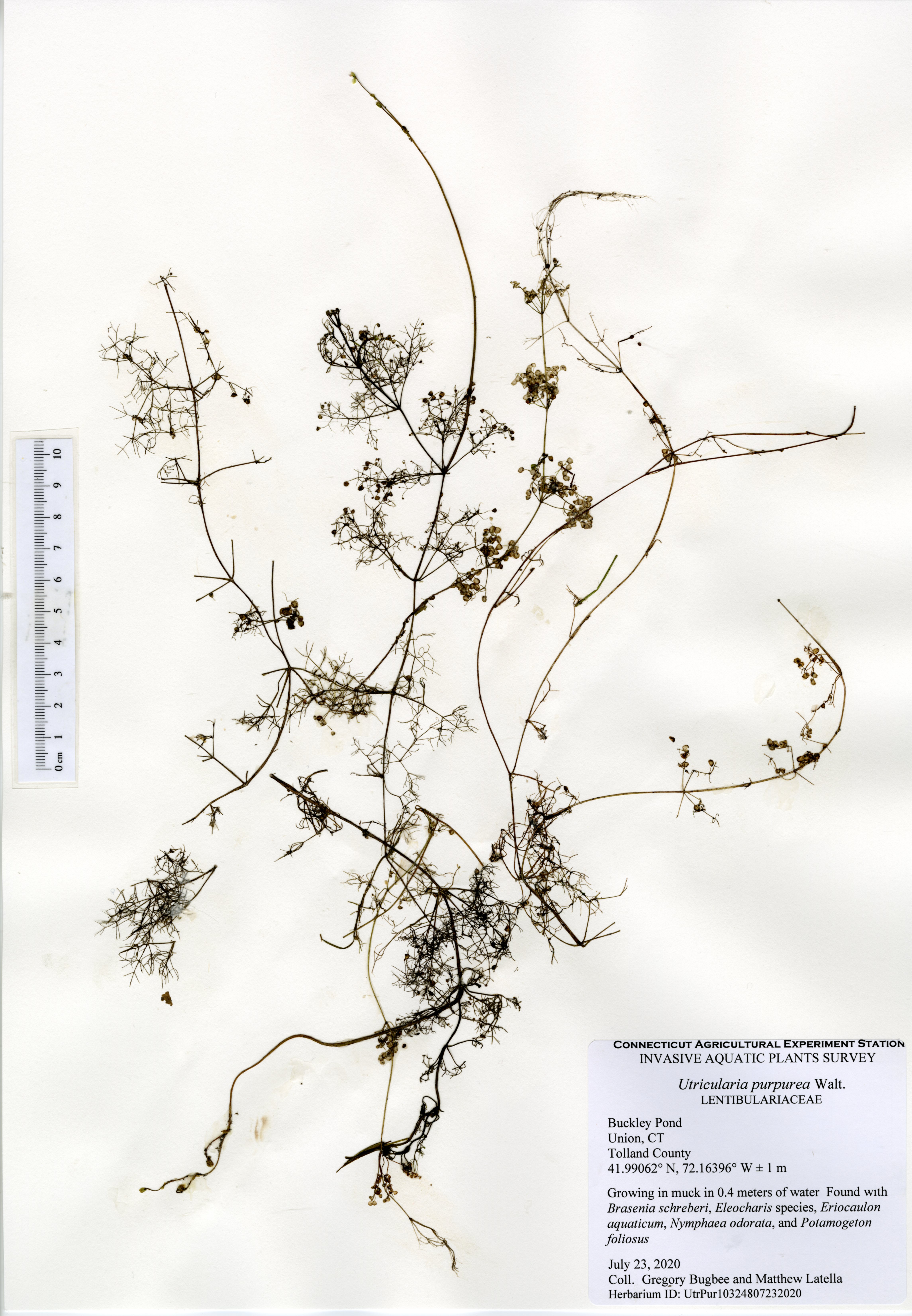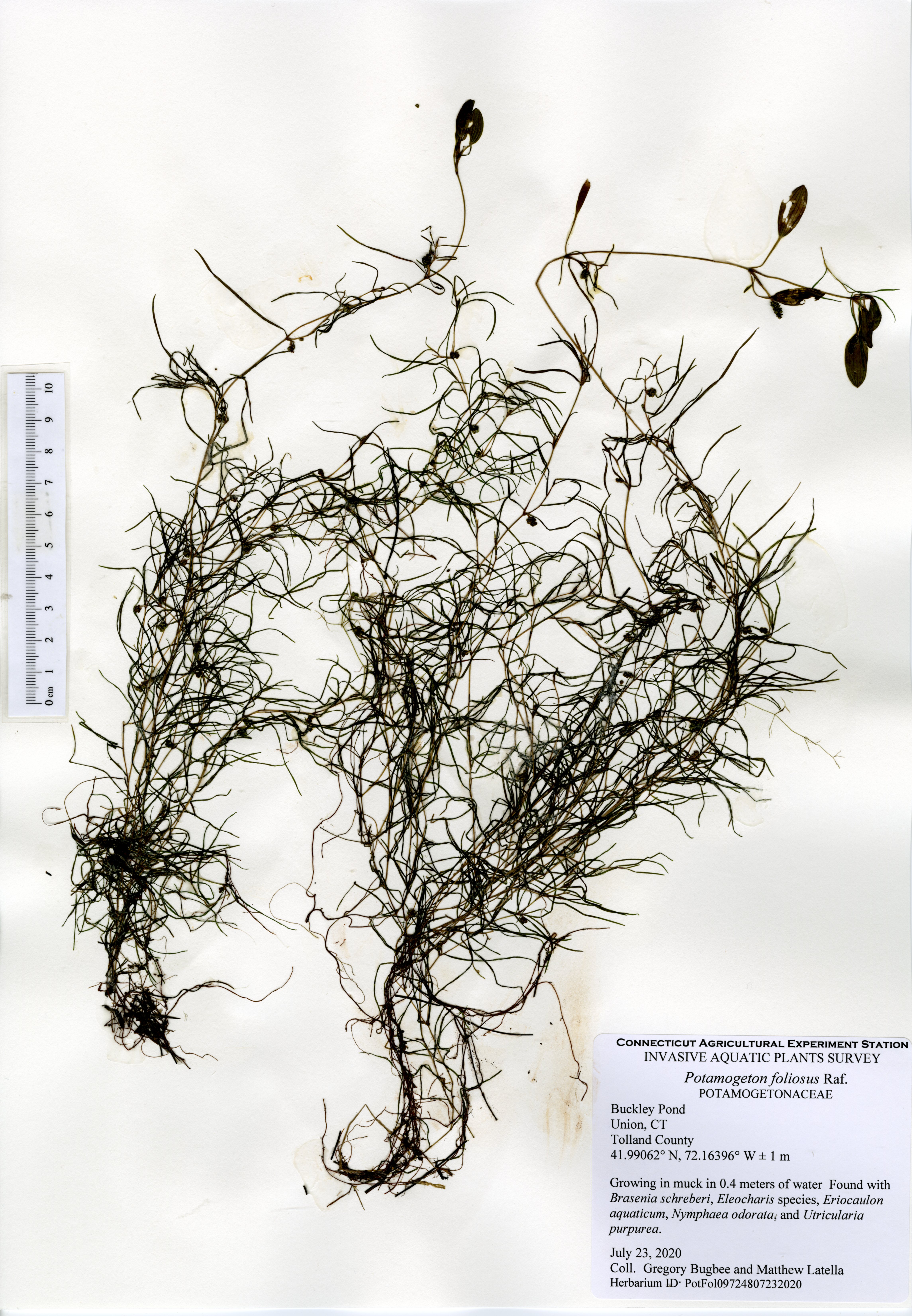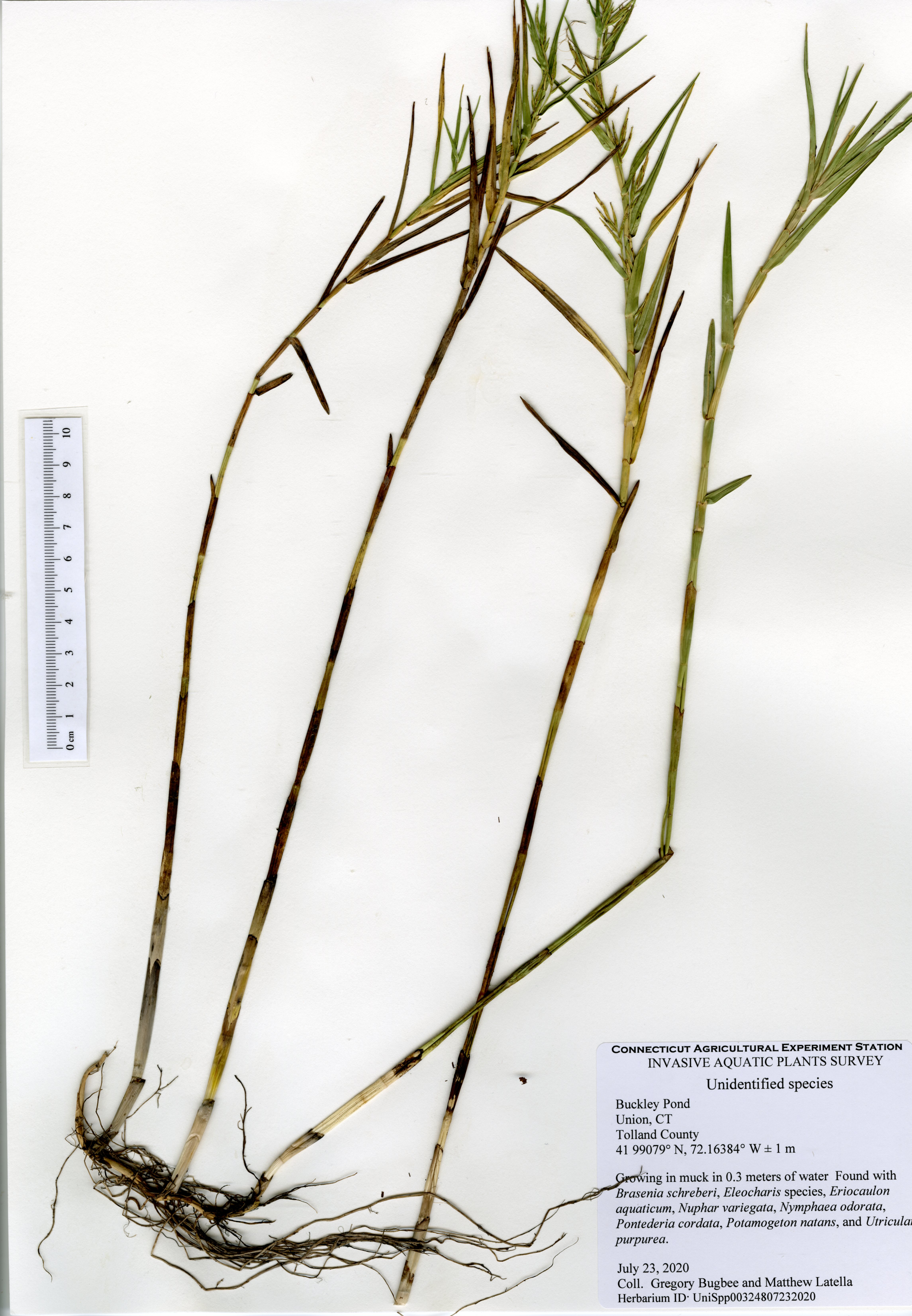 Buckley Pond is a 24-acre waterbody located in Union, CT. The pond is very shallow with an average depth of 1 m. Our CAES IAPP survey found 15 aquatic plant species. There were no invasive aquatic plants; however, common reed (Phragmites australis) was found which is an invasive wetland plant. The other 14 species were all native.