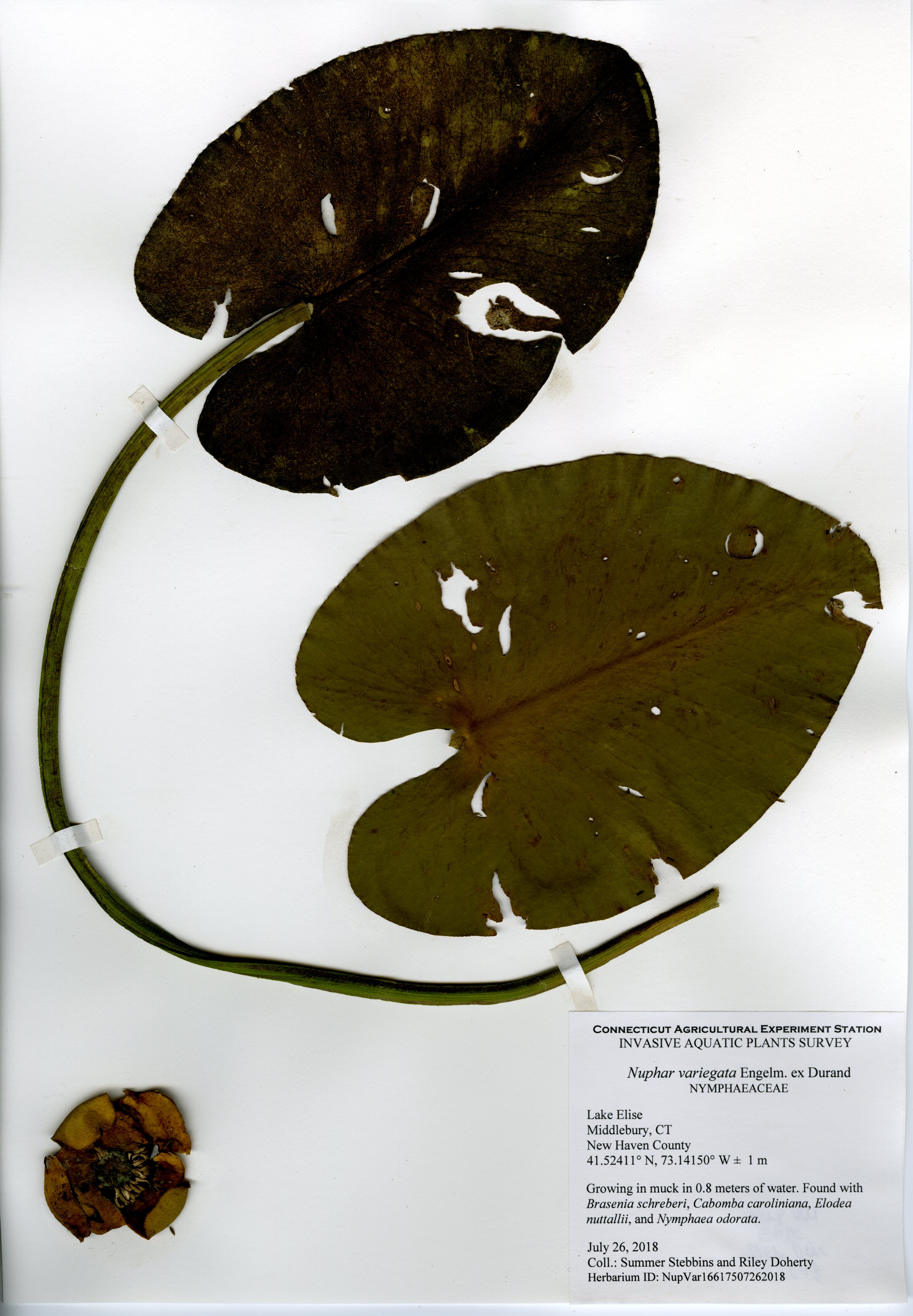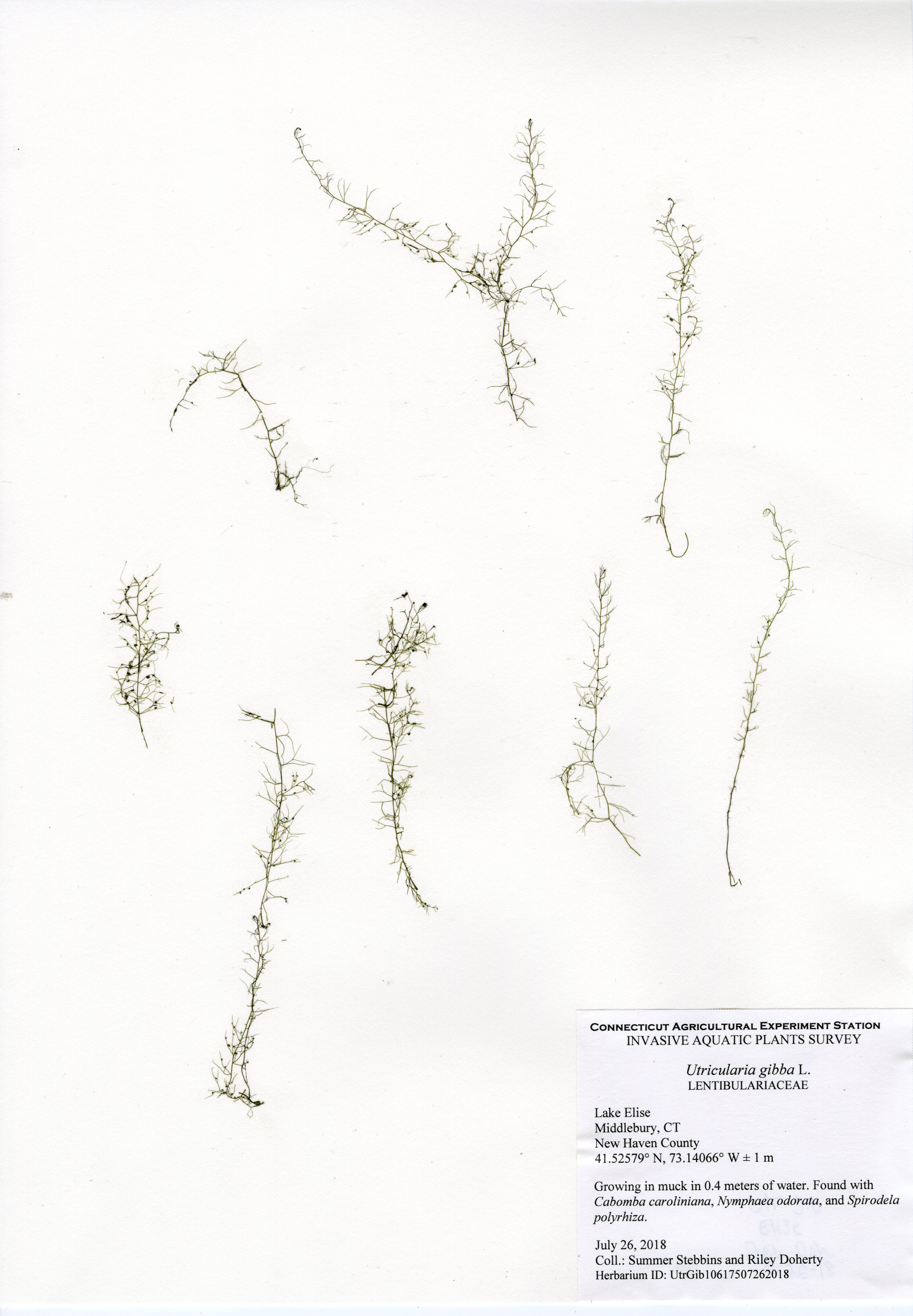 In 2018, CAES IAPP performed a resurvey of Lake Elise, the first survey done in 2011. Ten species were found, a decrease from fifteen in 2011. The same invasive species, fanwort (Cabomba caroliniana), was found in 2018, though at a much lower abundance. In 2011, it formed a thick ring around the entire perimeter, but in 2018 it was much patchier. Fanwort was still the dominant species in the lake, but the nine native species were more abundant in the northeastern portion of the lake. Overall, the aquatic plant abundance was less than found in 2011, with very little found along the western and southern perimeter.