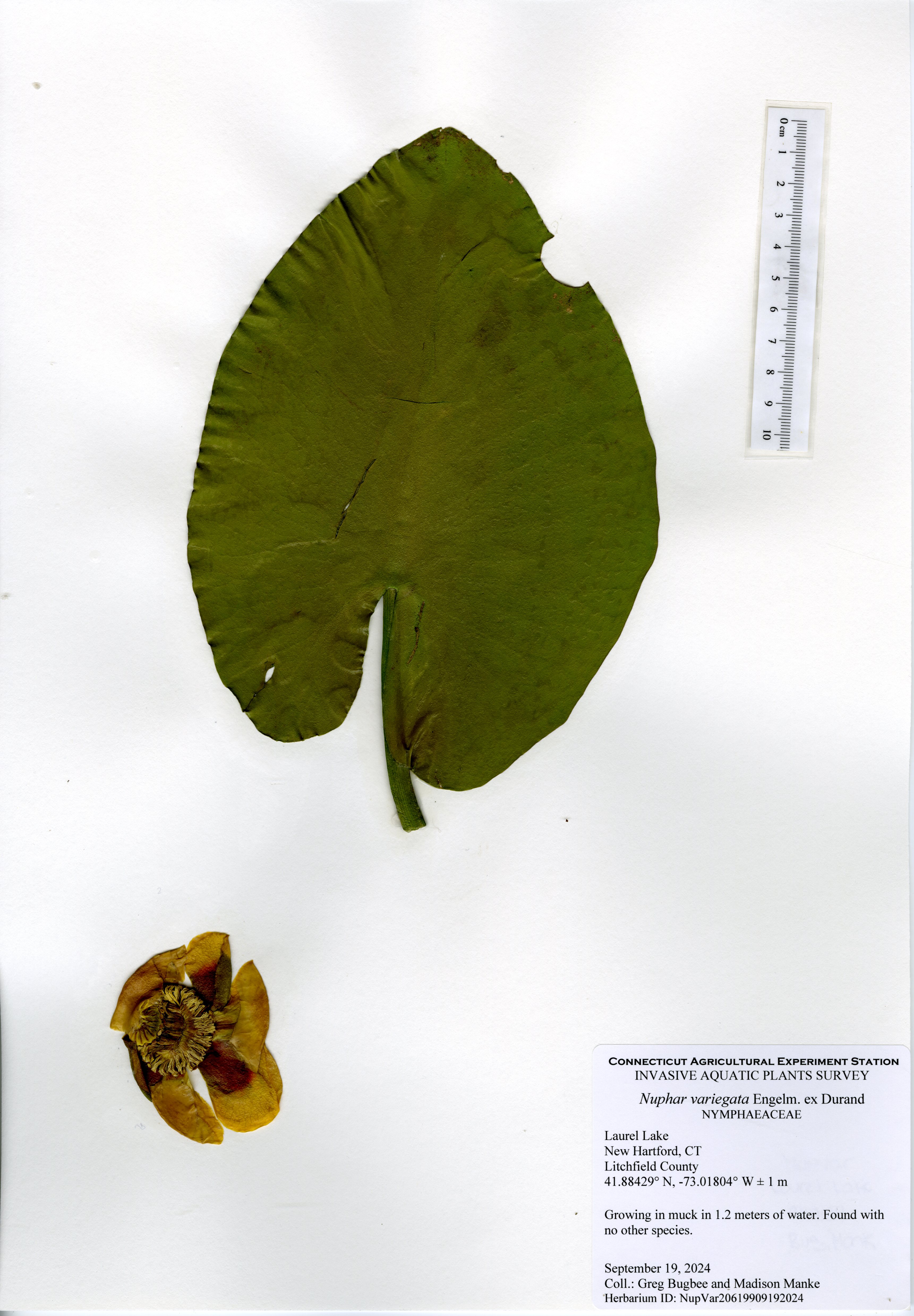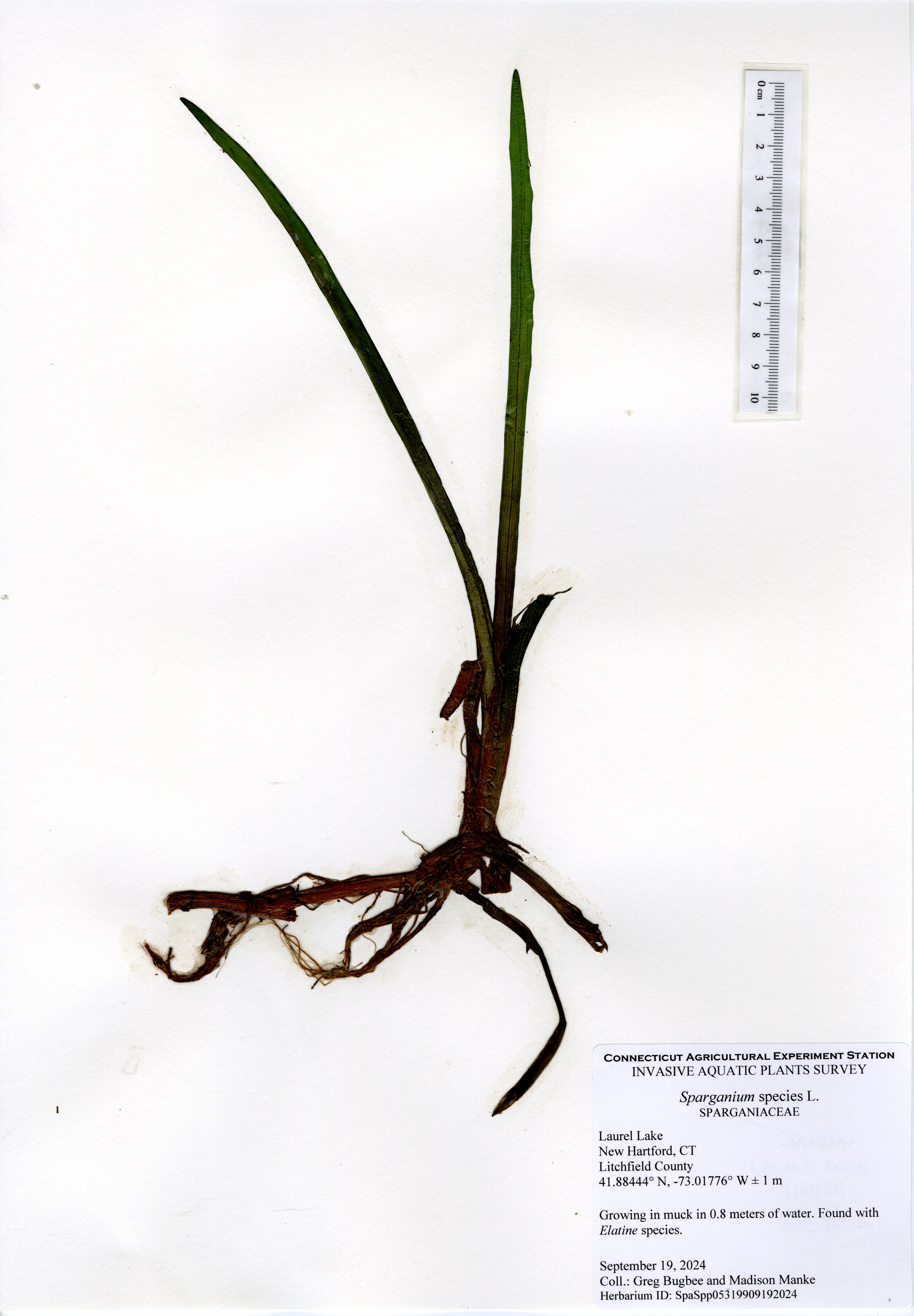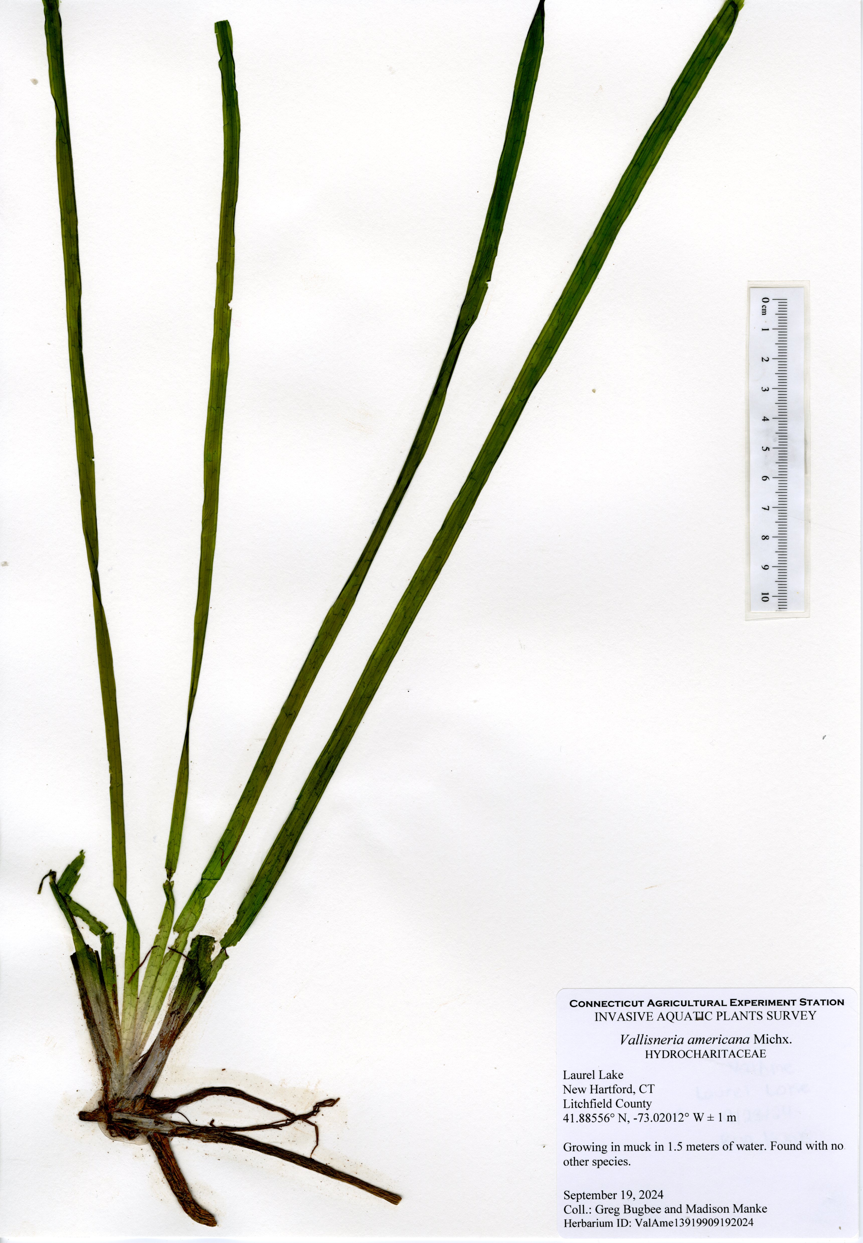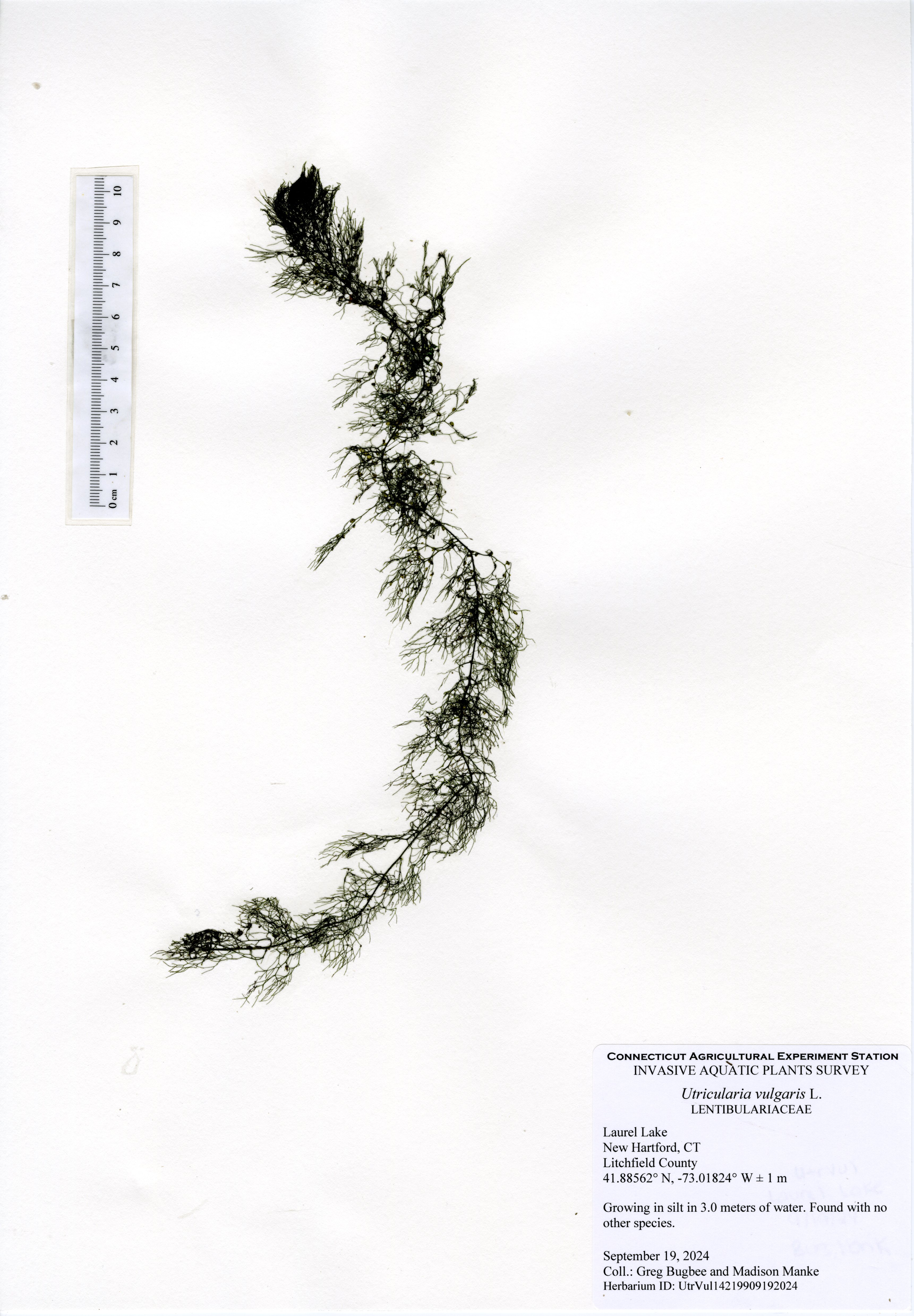 The 2024 aquatic plant survey was the sixth survey of Laurel Lake performed by the Connecticut Agricultural Experiment Station (CAES) Office of Aquatic Invasive Species (OAIS) since 2012. In 2024, we found 15 aquatic plant species including one invasive: minor naiad (Najas minor). Minor naiad is an annual that propagates from seed each year. There was less minor naiad found in 2024 compared to 2022, but it occurred in many of the same parts of the lake. The majority of minor naiad was found in the southern half of the lake, with a small population found in the very north end of the lake by the cattails. Two wetland species were also mapped: native cattail (Typha species) and invasive phragmites (Phragmites australis). The phragmites was found in the same spot as in 2022, by the western cove of the lake, and was roughly the same size.