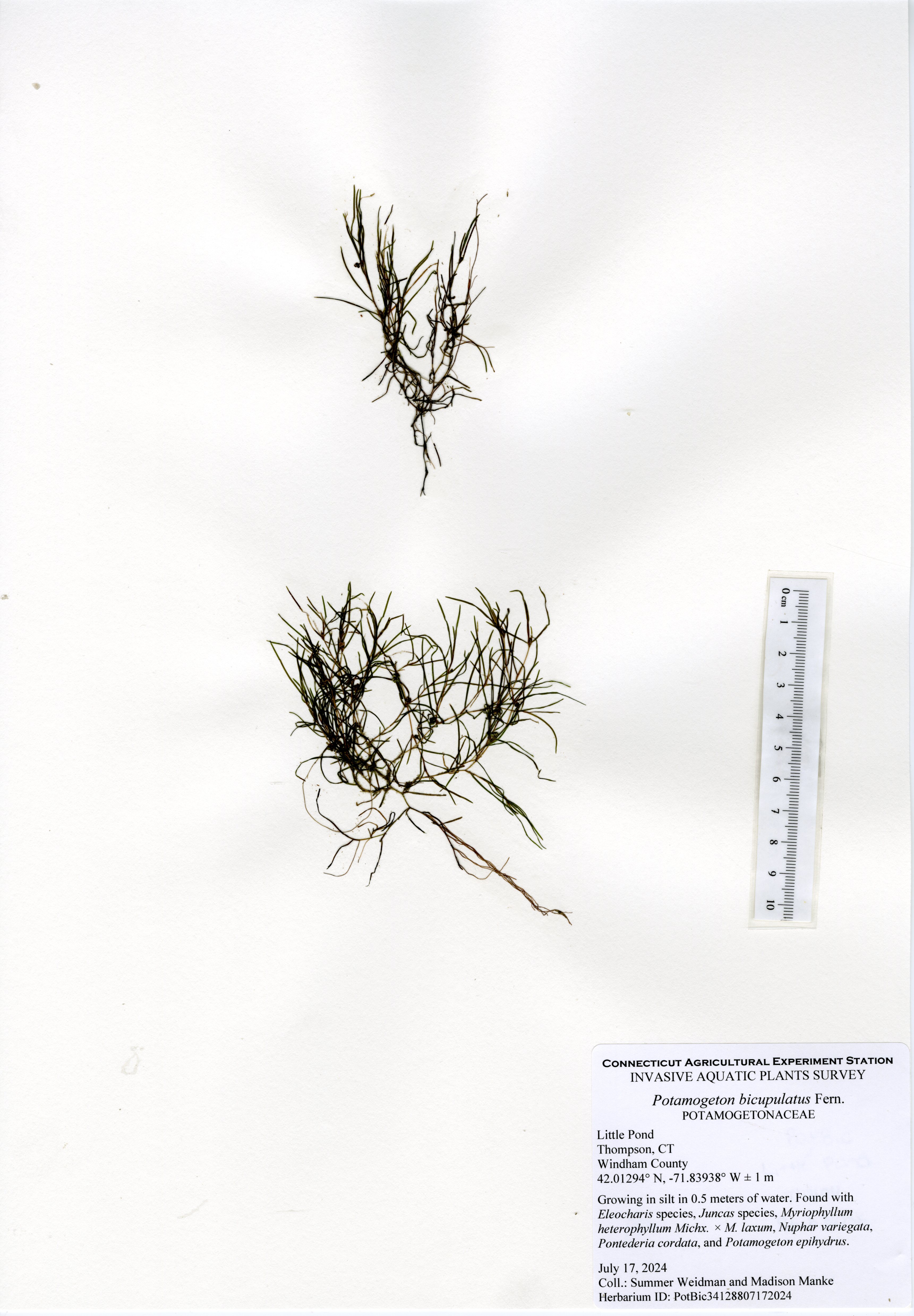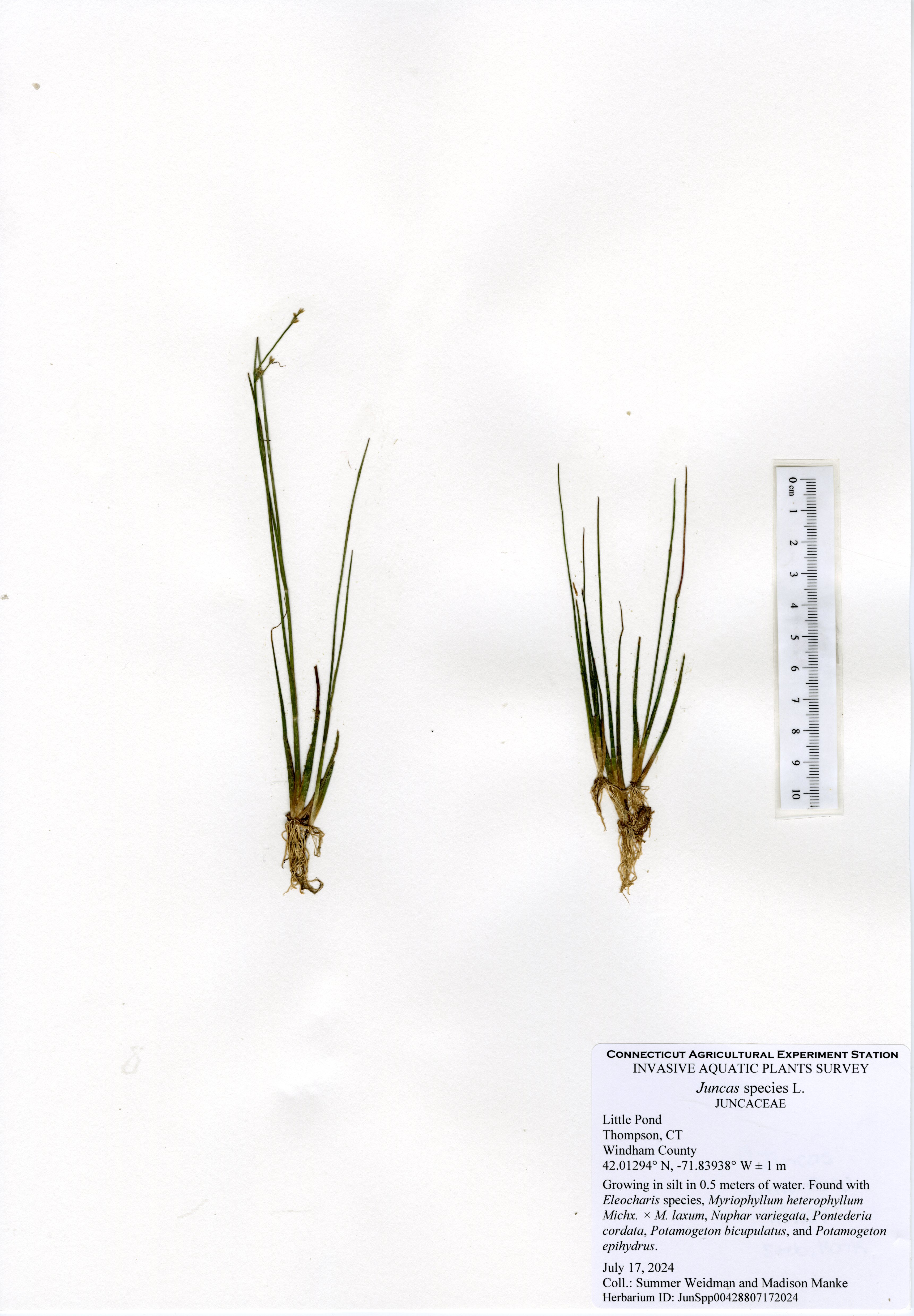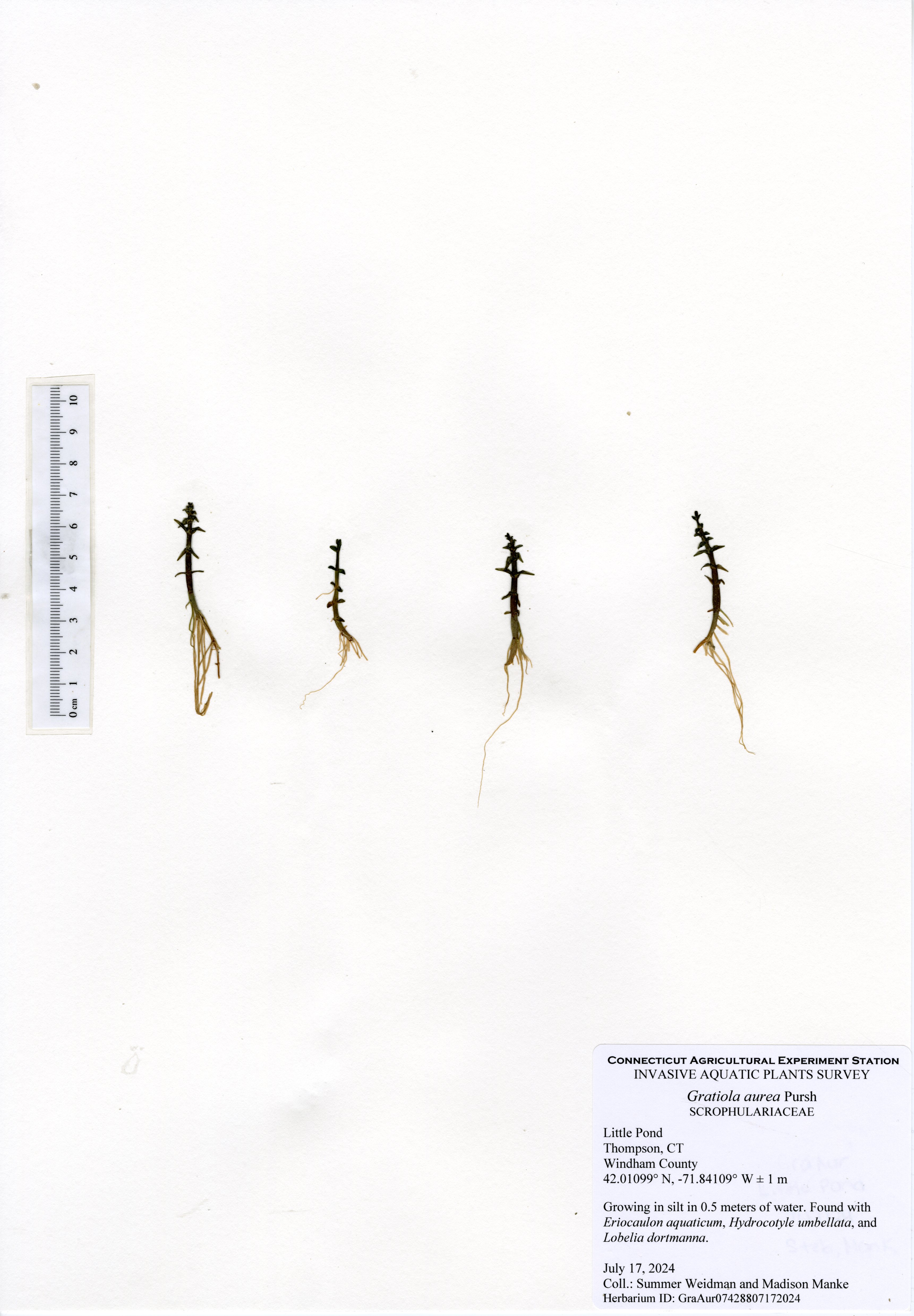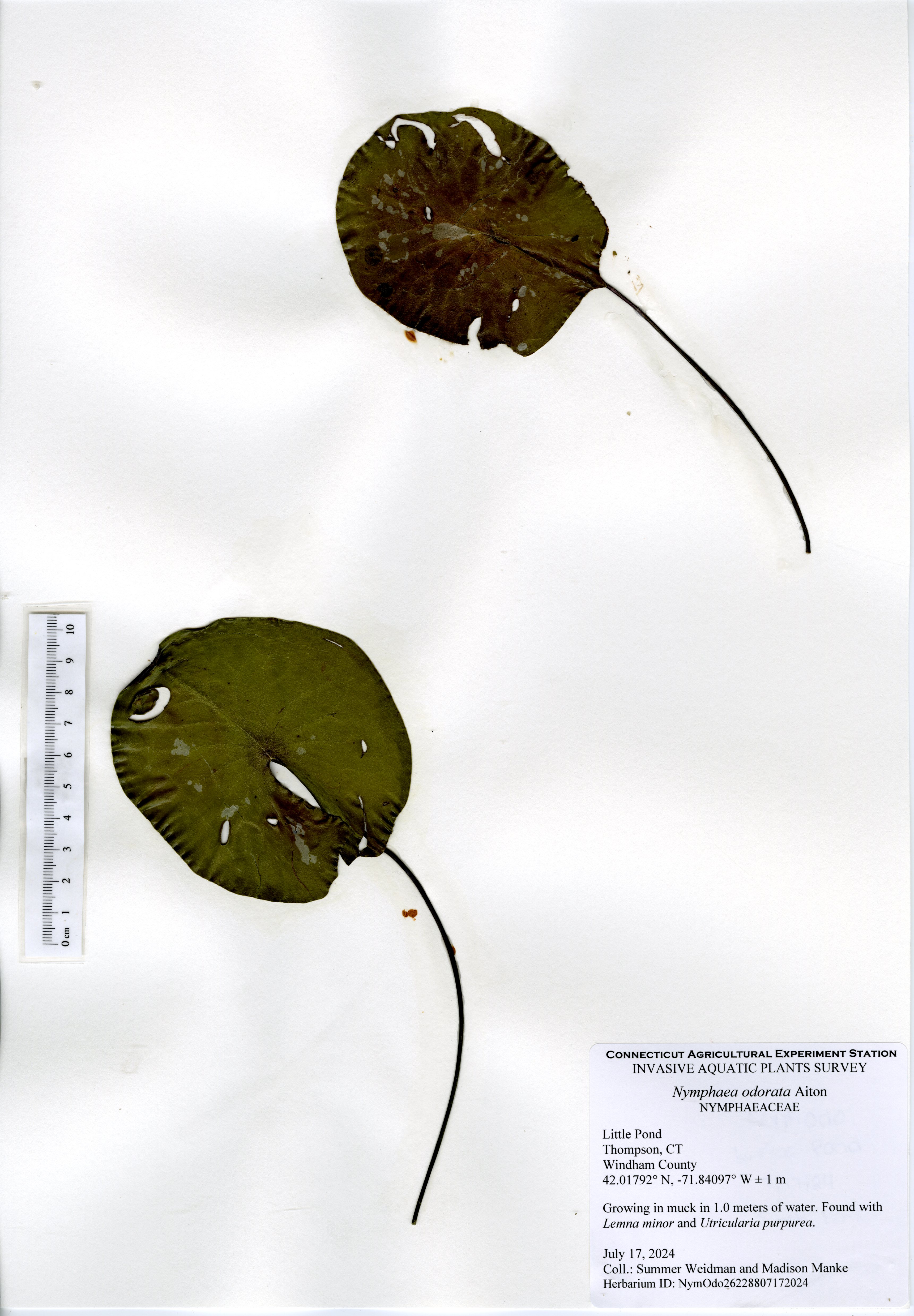 CAES OAIS conducted its first survey of Little Pond in July 2024. During the survey, 20 plant species were identified, including three invasive species. One invasive species, purple loosestrife (Lythrum salicaria), a wetland plant, was observed in small patches on the northwestern and eastern sides of the pond. The other two invasives, Eurasian watermilfoil (Myriophyllum spicatum) and a variable-leaf watermilfoil hybrid (Myriophyllum heterophyllum ×laxum), were also documented. Eurasian watermilfoil was primarily concentrated on the eastern side, while variable-leaf watermilfoil was found in small patches scattered along the pond's edges.