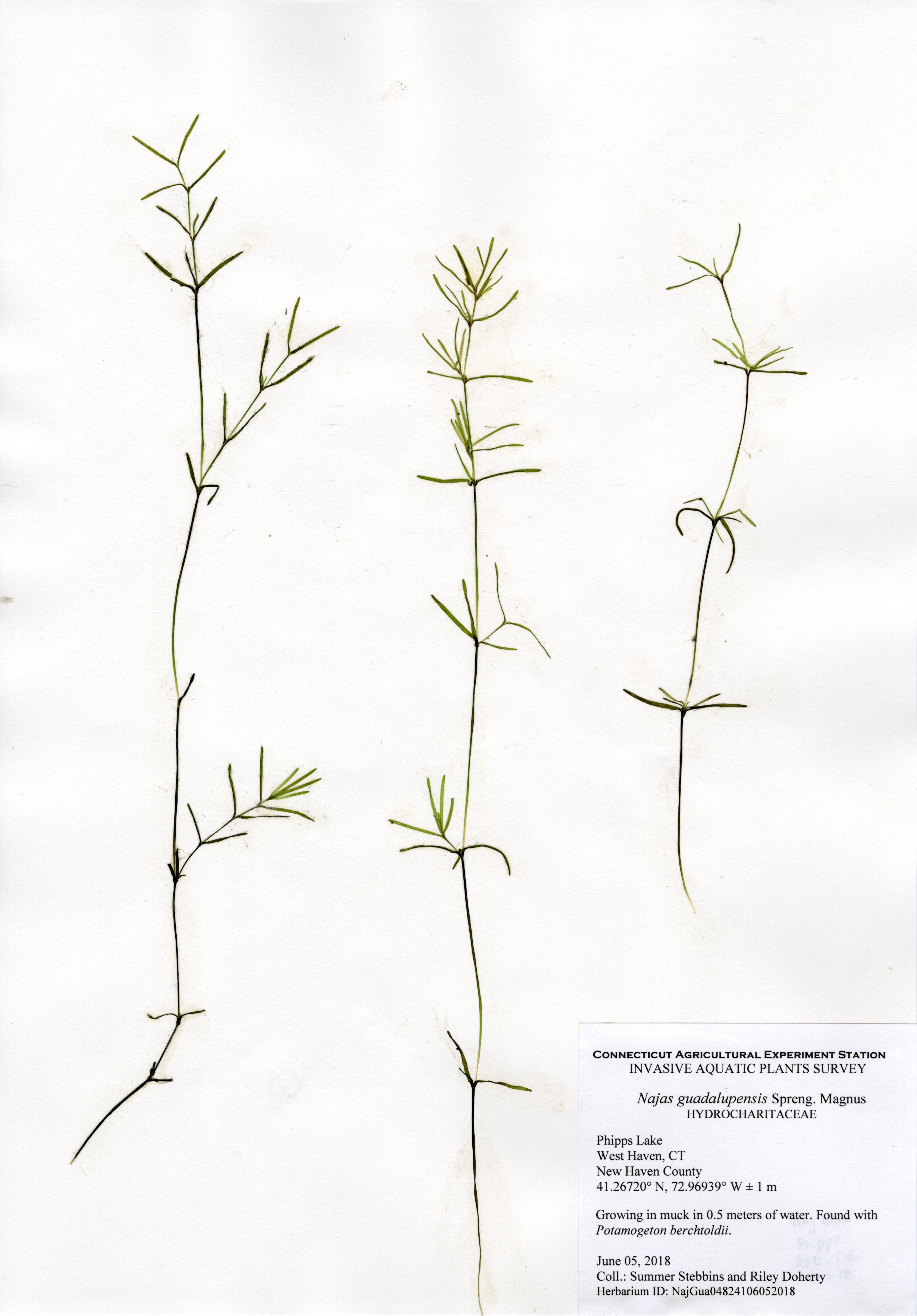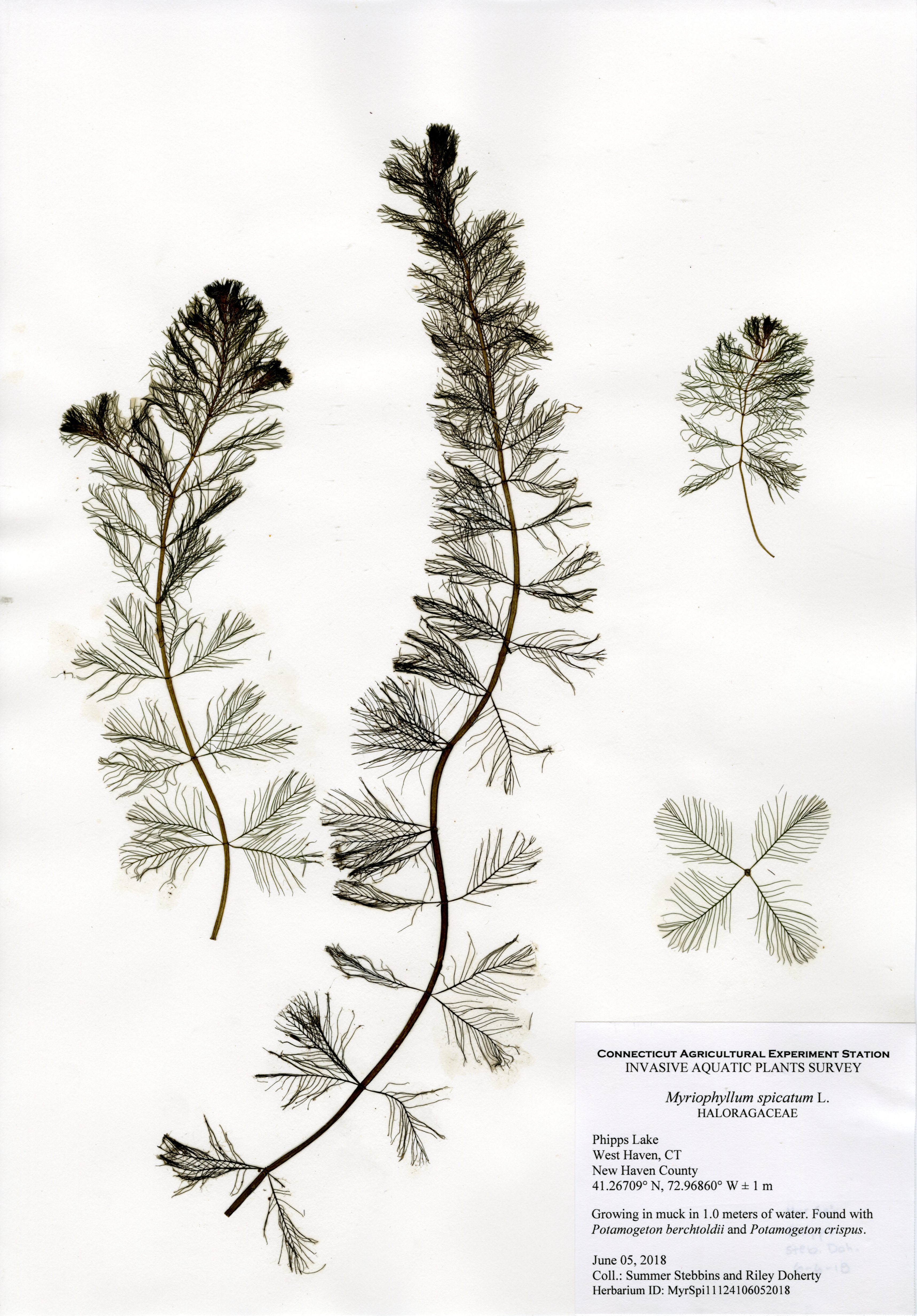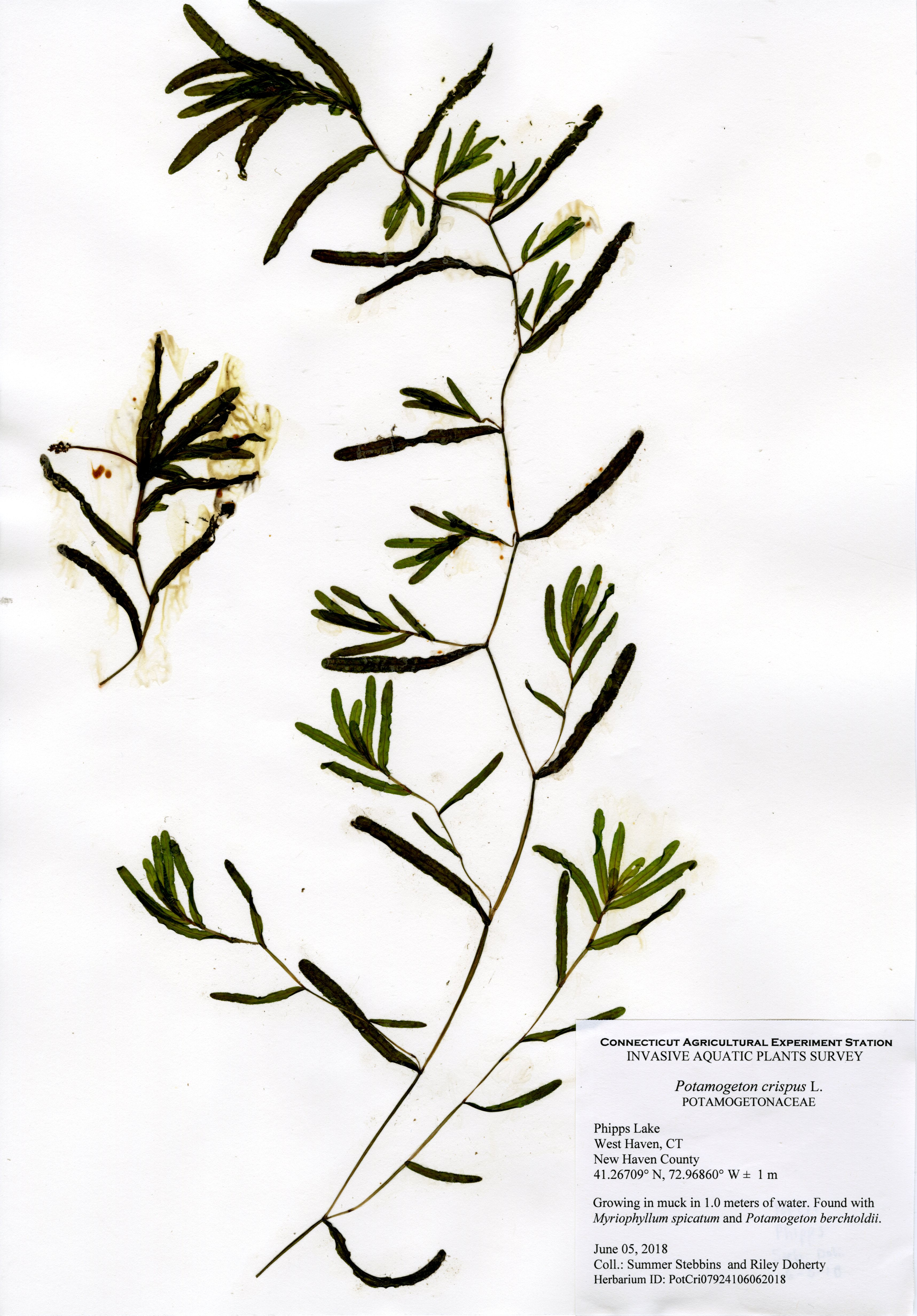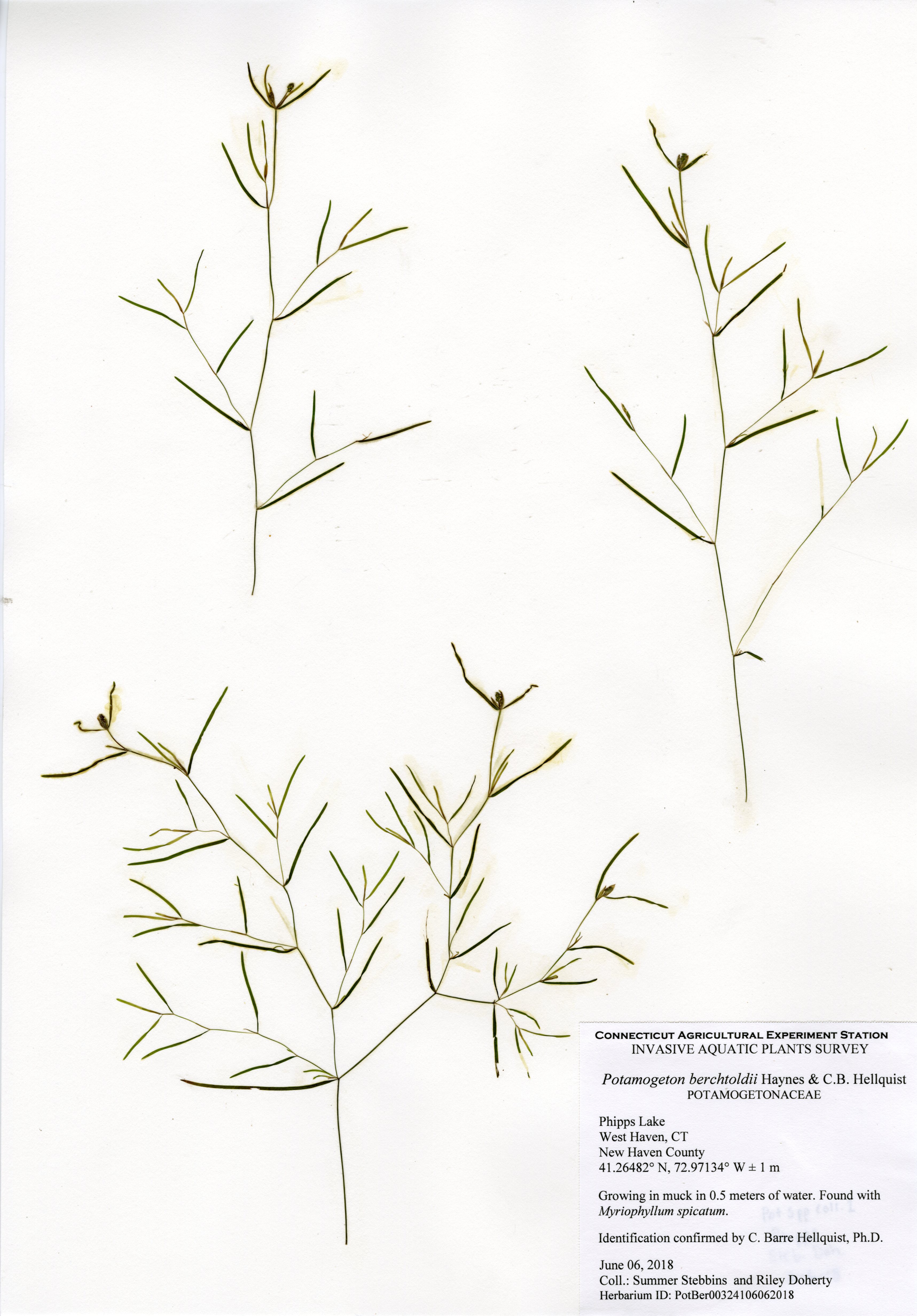 CAES IAPP surveyed the lake for the first time in 2018. Seven species were found, two being invasive. The two invasive species are curlyleaf pondweed (Potamogeton crispus) and Eurasian watermilfoil (Myriophyllum spicatum). They were found throughout the entire lake with the exception of the northeast corner where the lake is relatively deep. White water lily (Nymphaea odorata) and Berchtold's pondweed (Potamogeton berchtoldii) were found in large abundance around the perimeter of the lake. Overall, the lake has a lot of dense vegetation comprised of both native and invasive species. All of the species reach the water’s surface potentially impacting recreation.