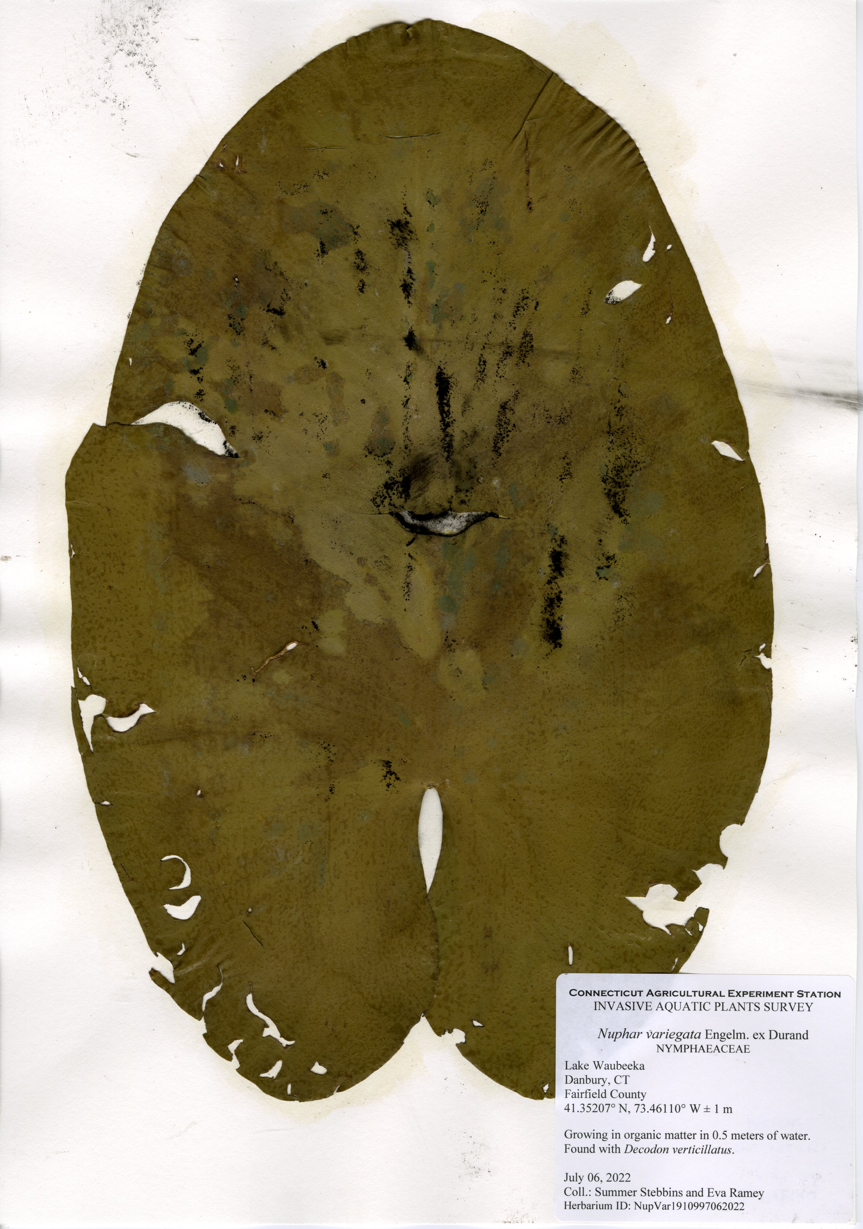 Lakes with a diverse plant community are desirable for aquatic organisms and water quality enhancement. Pachaug Pond and Moodus Reservoir are among the most diverse lakes in the state and have over 30 aquatic plant species. Lake Waubeeka’s current total of four species make it one of the Connecticut’s least diverse lakes with grass carp herbivory the likely cause. In 2005, aquatic plant vegetation covered most of Lake Waubeeka. By 2019, vegetation was limited to emergent vegetation and water lilies along the shoreline. In 2022, vegetation was similar to 2019 with a slight increase in abundance of yellow water lily. In 2022, plant coverage of Lake Waubeeka’s littoral zone (essentially the entire lake) was well below the 20-40% suggested for optimal habitat for fish and other aquatic organisms.