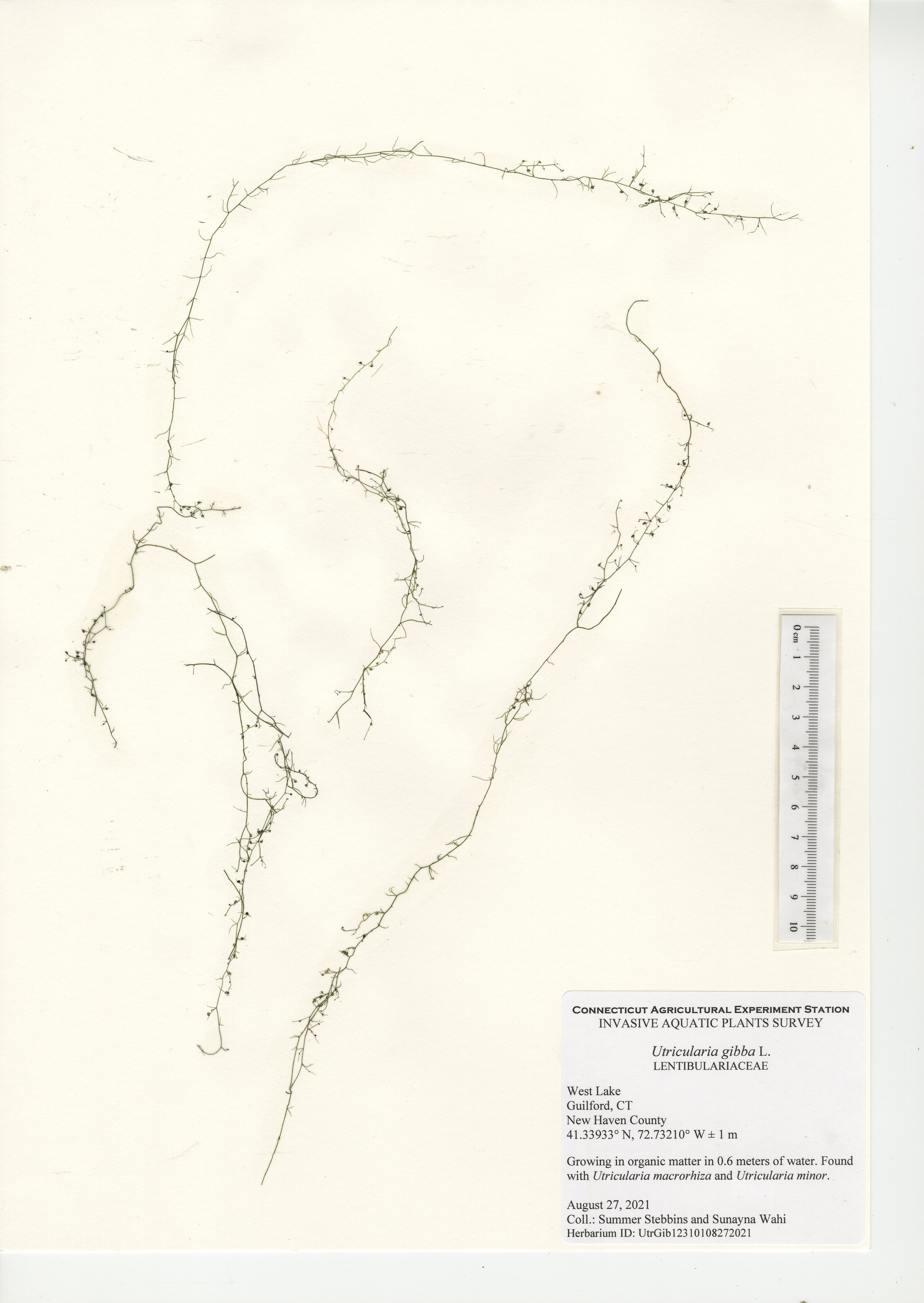 West Lake is a 52-acre lake located in Guilford, CT. The lake was surveyed for the third time in 2021 by CAES IAPP with the previous surveys occurring in 2005 and 2010. Nineteen native species were found in 2021, compared to 27 in 2010 and 18 in 2005. Minor naiad (Najas minor) was the only non-native invasive aquatic plant found during the 2005 and 2010 surveys; however, it was not observed during our 2021 survey. No invasive aquatic plants were therefore observed in 2021. This along with the decline in native species was likely caused by an aquatic herbicide application performed approximately a month prior to our survey. Two invasive non-aquatic wetland plants were found during the 2021 survey: phragmites (Phragmites australis) and purple loosestrife (Lythrum salicaria). Our documentation of non-aquatic plant species is outside the scope of CAES IAPP surveys and is performed at the discretion of the surveyor. Comparing their presence from survey-to-survey is therefore unreliable.