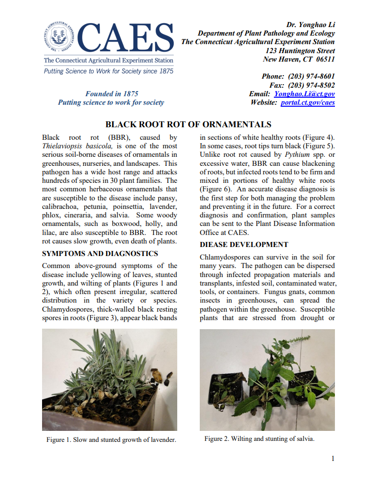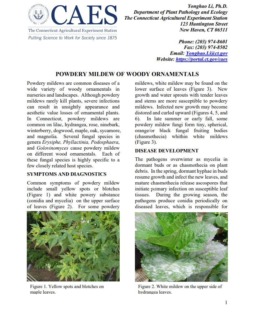 These fact sheets provide information about the topics above as well as control options. All of these fact sheets and many more can be found in our Publications section. Apple ScabBlack Spot of Rose by Dr. Yonghao Li, and Running Bamboo (Phyllostachys spp.) in Connecticut by Dr. Jeffrey Ward.