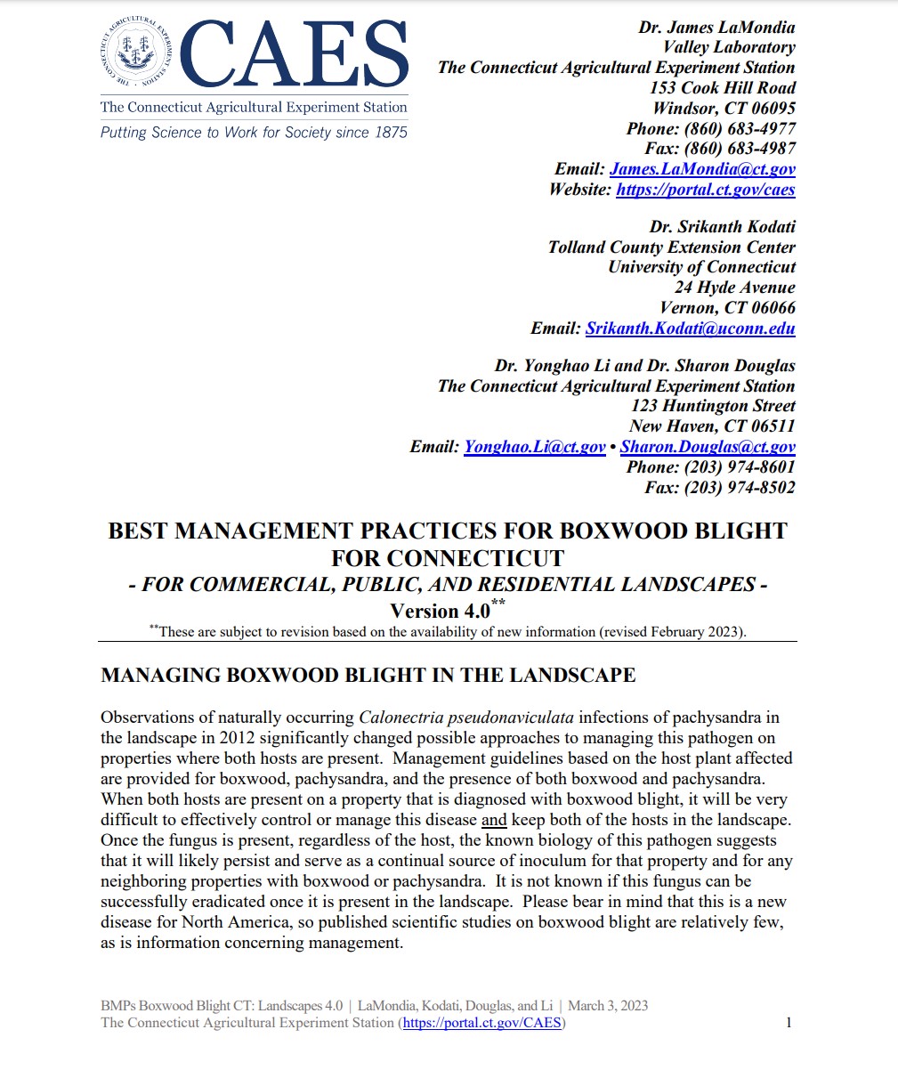 New Fact Sheets of Boxwood Blight BMPS