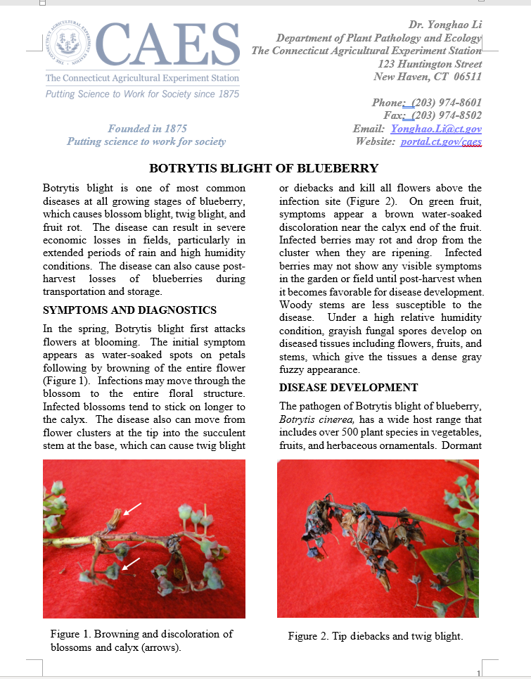 Viral diseases of bedding plants               Botrytis blight of blueberry