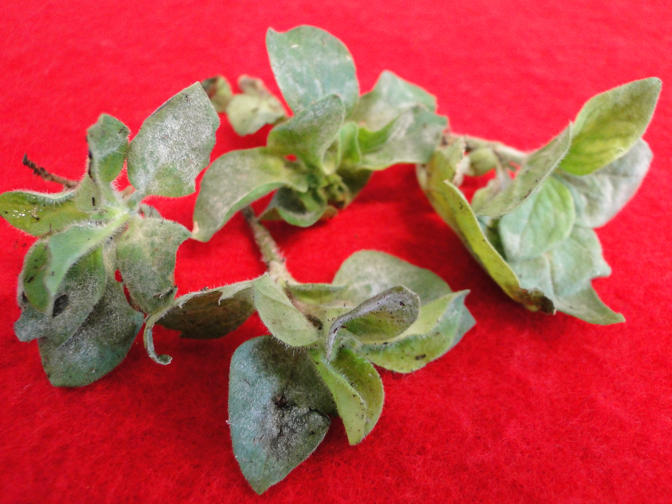 Powdery mildew on petunia                        Tomato spotted wilt virus on cineraria