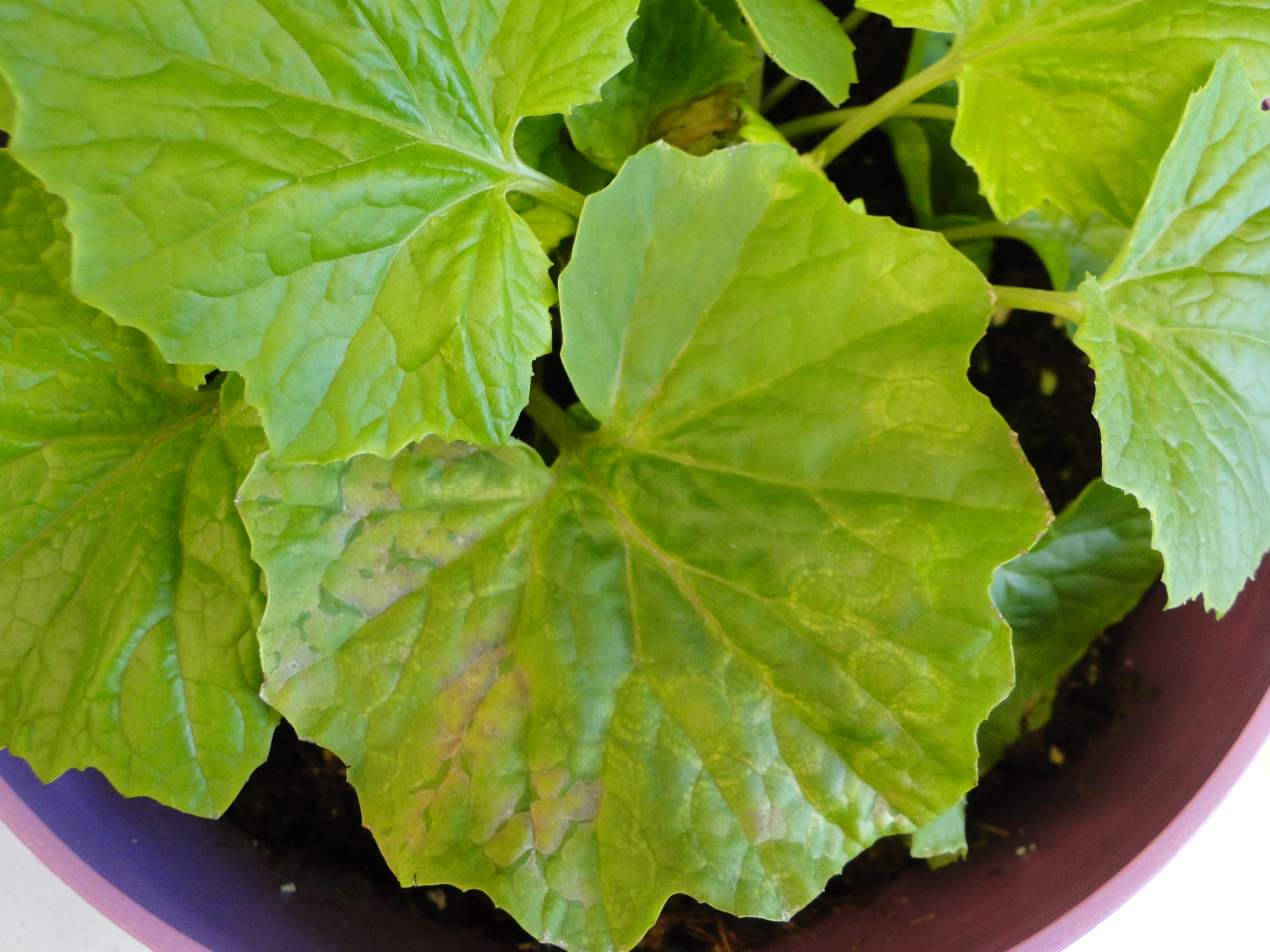 Cucurbit downy mildew affects the foliage of cucumbers, melons, squash, pumpkins, and watermelon and can cause serious damage when infections begin early in the season. Symptoms include leaf spots which begin as a light yellow or green color and merge together as the disease progresses to form large brown spots and leaf death.