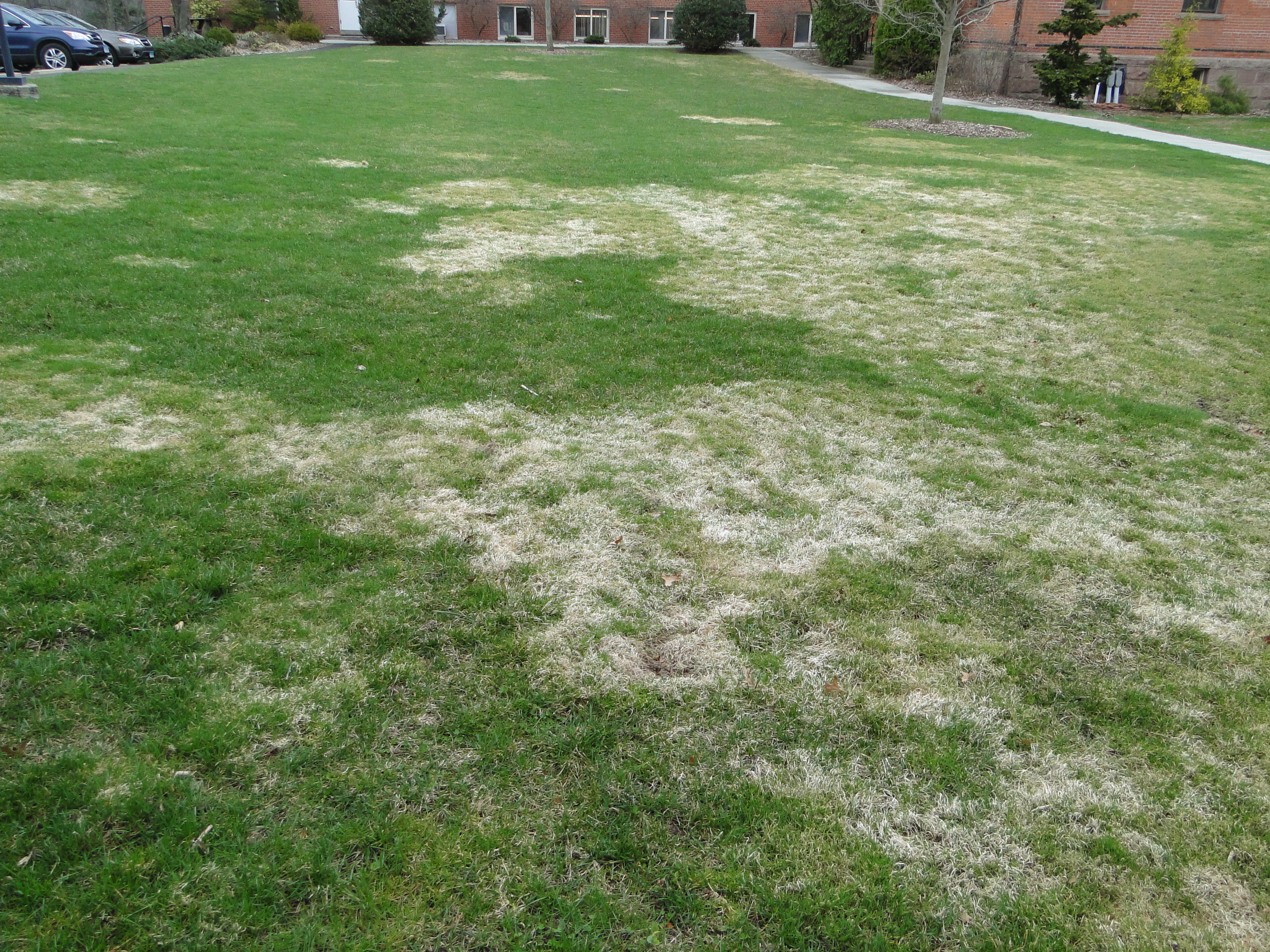 Pinkish brown spots in a lawn