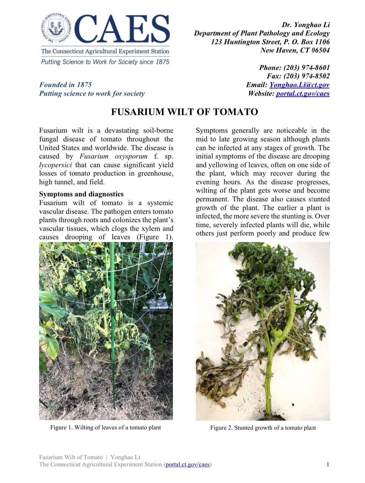 Any suspicious tomato or potato samples should be sent or brought to The Plant Disease Information Office for examination and diagnosis as soon as possible.