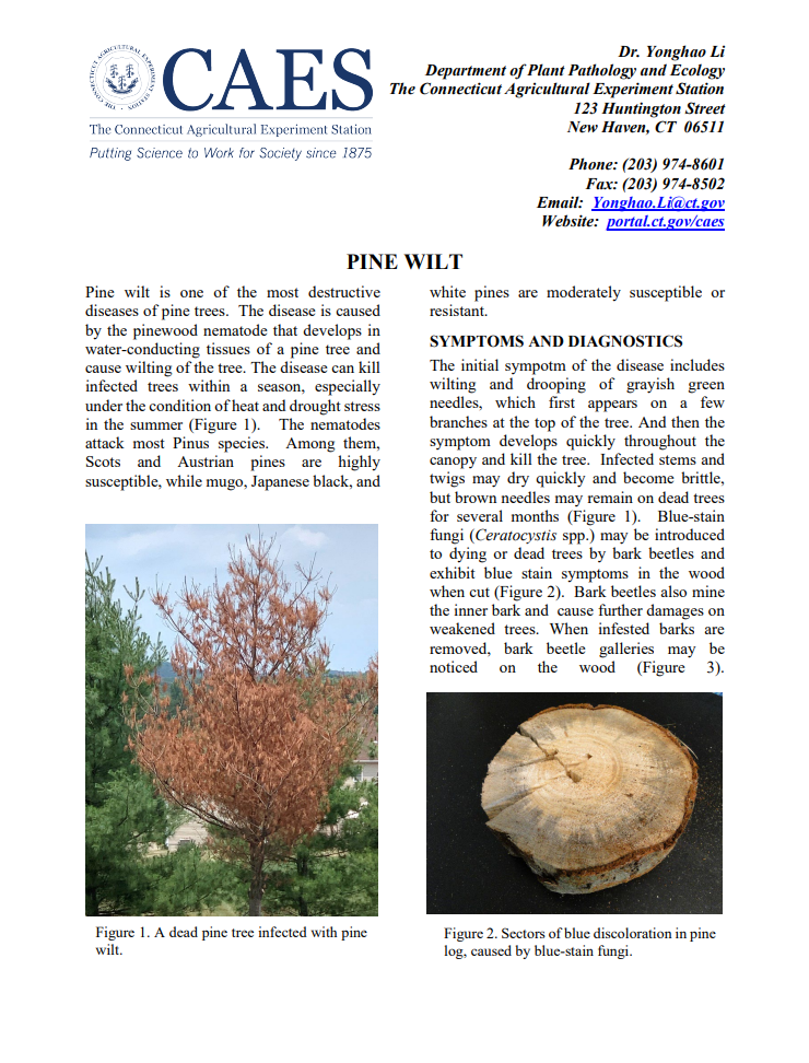 If you have any concerns or want more information about this destructive disease, please call The Plant Disease Information Office at 203.974.8601.