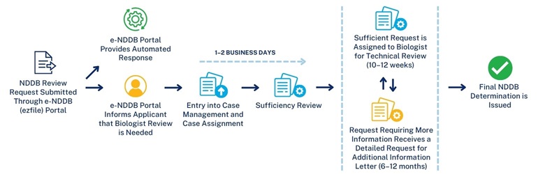 • Applicant submittal of an NDDB review request through the eNDDB portal.