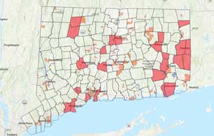 In CT, an environmental justice community is defined by the Connecticut General Statutes as:- a distressed municipality, as designated by the Connecticut Department of Economic and Community Development; OR