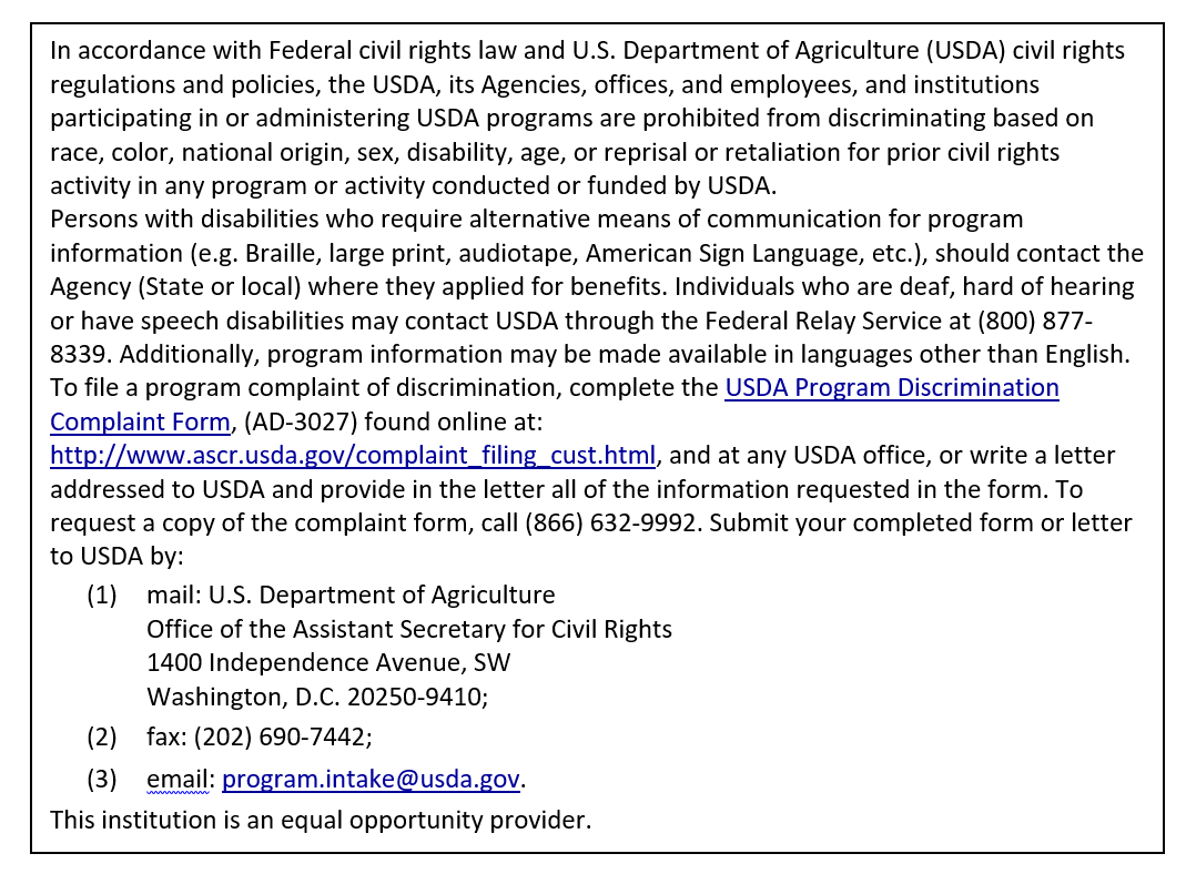 All sponsors must agree to serve meals to any eligible child regardless of his or her race, color, national origin, sex, age or disability. Summer Food Service Program sponsors are reimbursed according to predetermined U.S. Department of Agriculture reimbursement rates.  Meals must comply with federal nutrition standards.